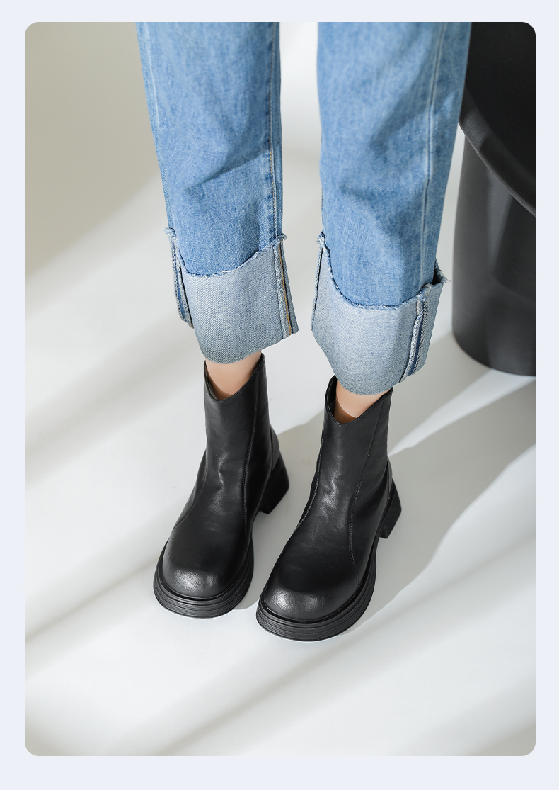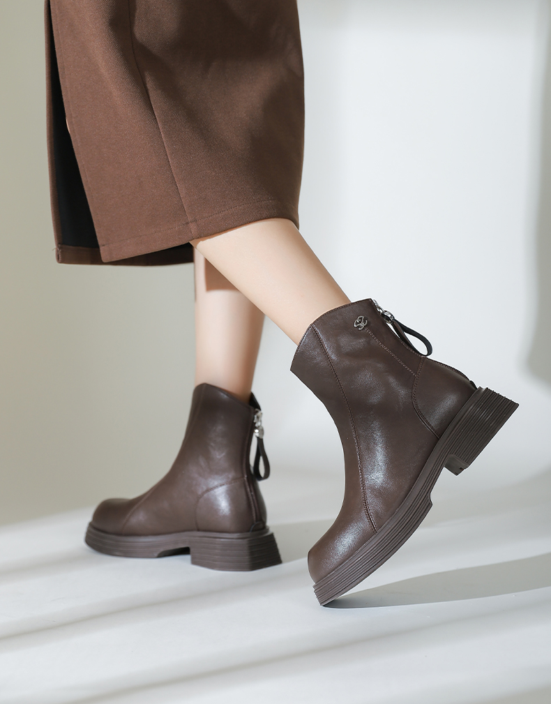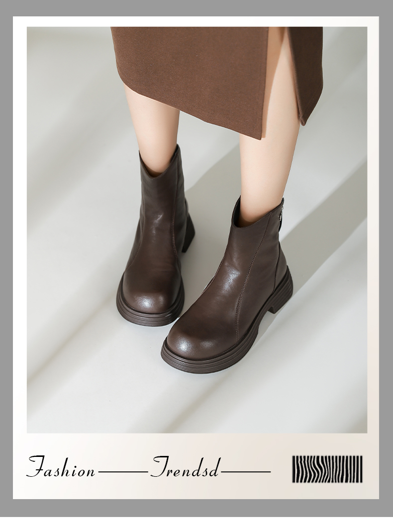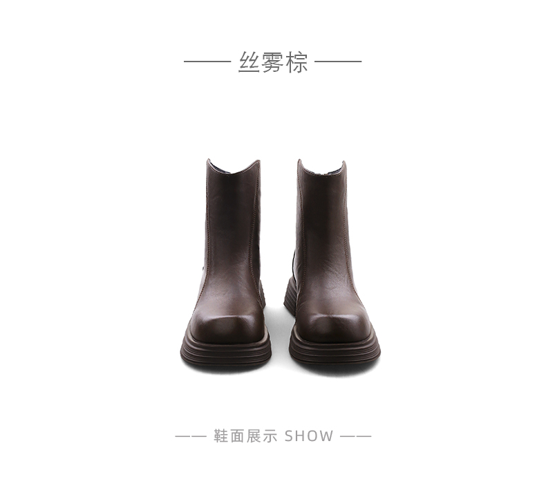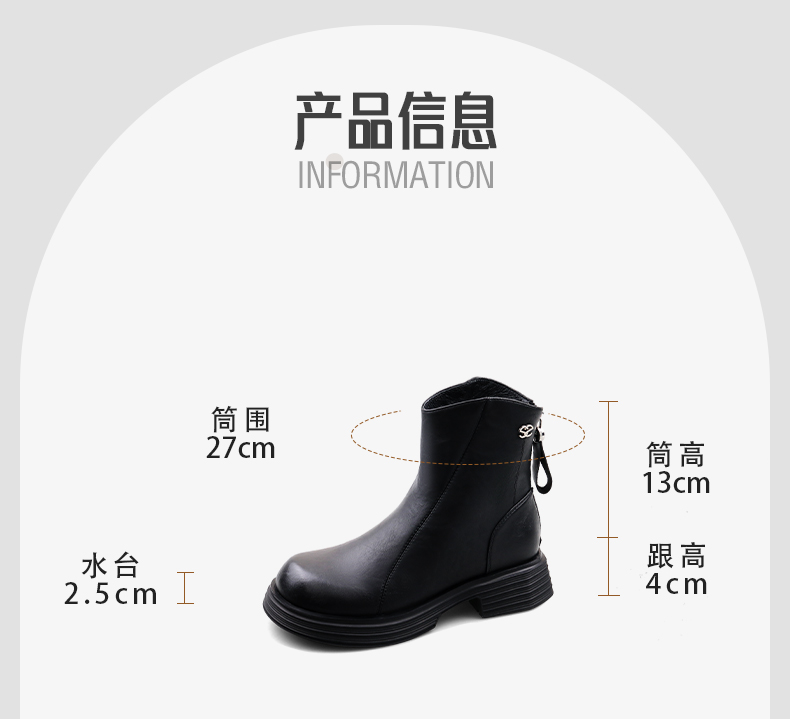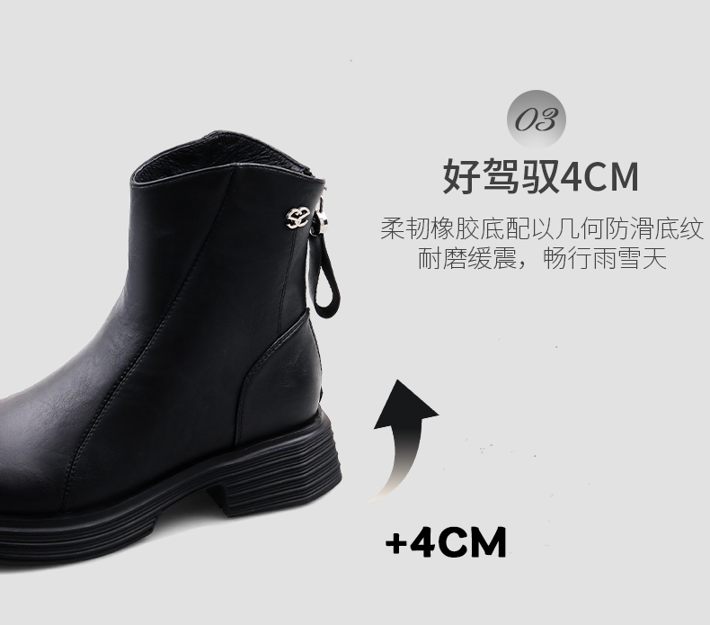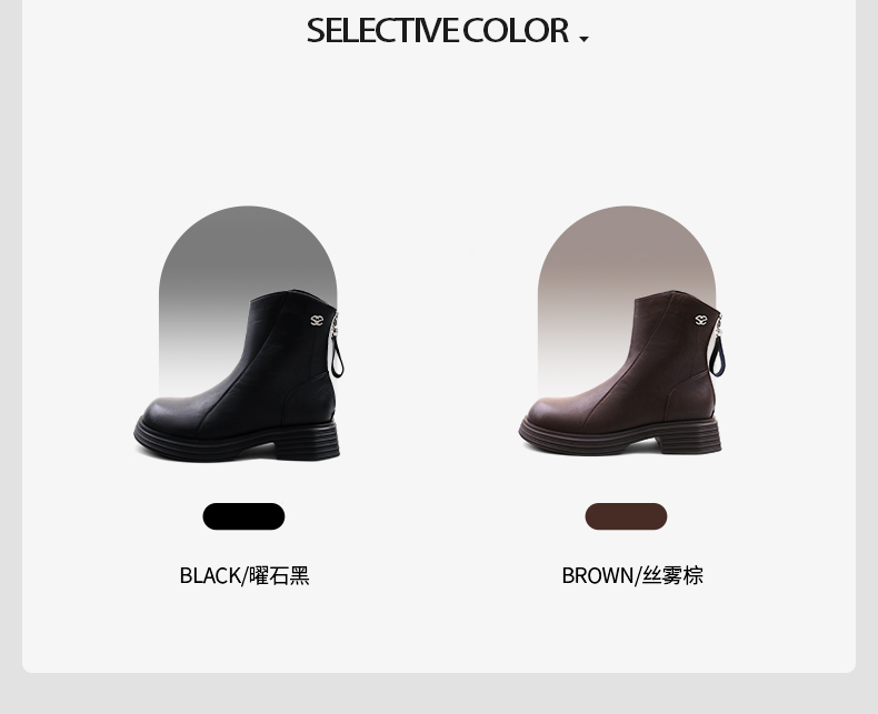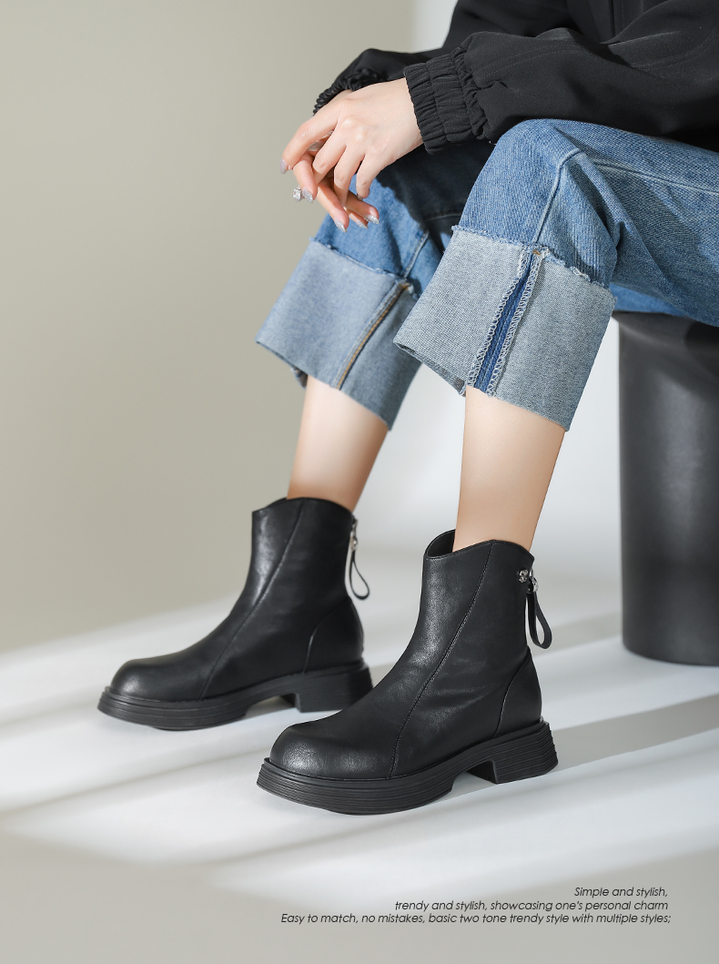 预售10天发|Safiya/索菲娅2024冬休闲圆头粗跟时尚百搭加绒加厚后拉链短踝靴 SF44116413/SF44118413