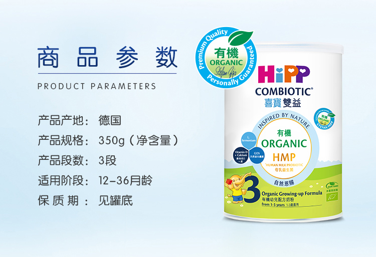 喜寶HiPP 有機HMP母乳益生菌+益生元嬰兒配方奶粉 3段 (350g)德国原罐进口