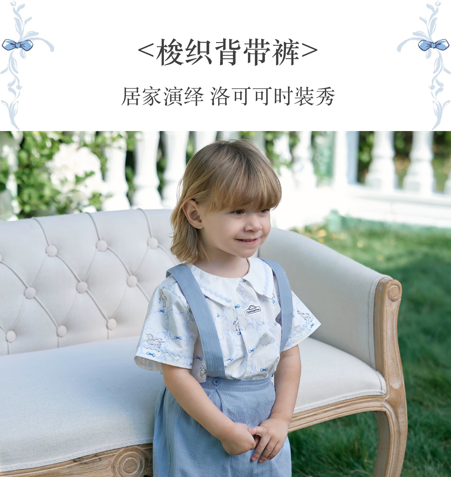 Domiamia 男童梭织背带裤 夏季户外薄款百搭短裤