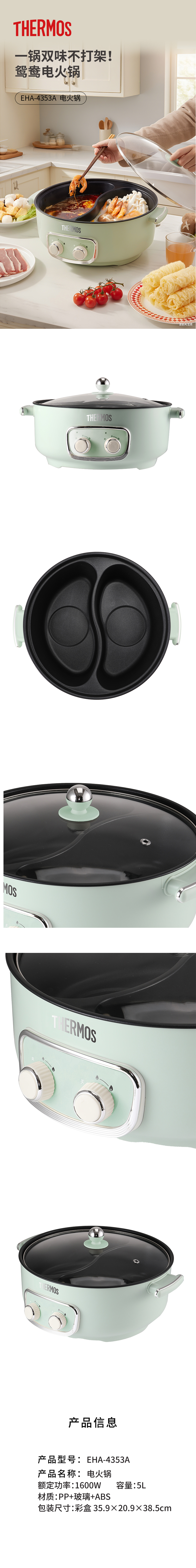 膳魔师 电火锅薄荷绿1600WEHA-4353A