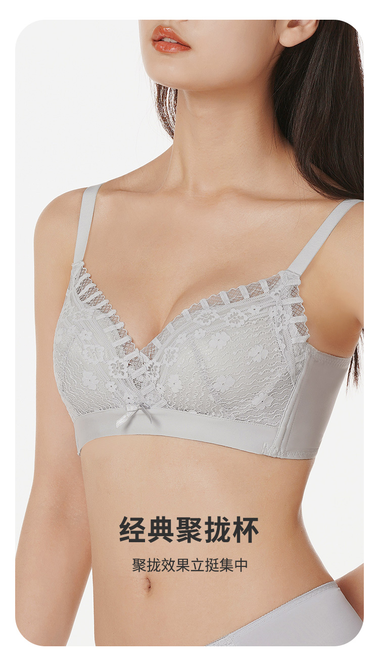 都市丽人聚拢升杯聚拢杯B杯常规内衣蕾丝中厚3/4杯文胸三排扣无钢圈LB25K1