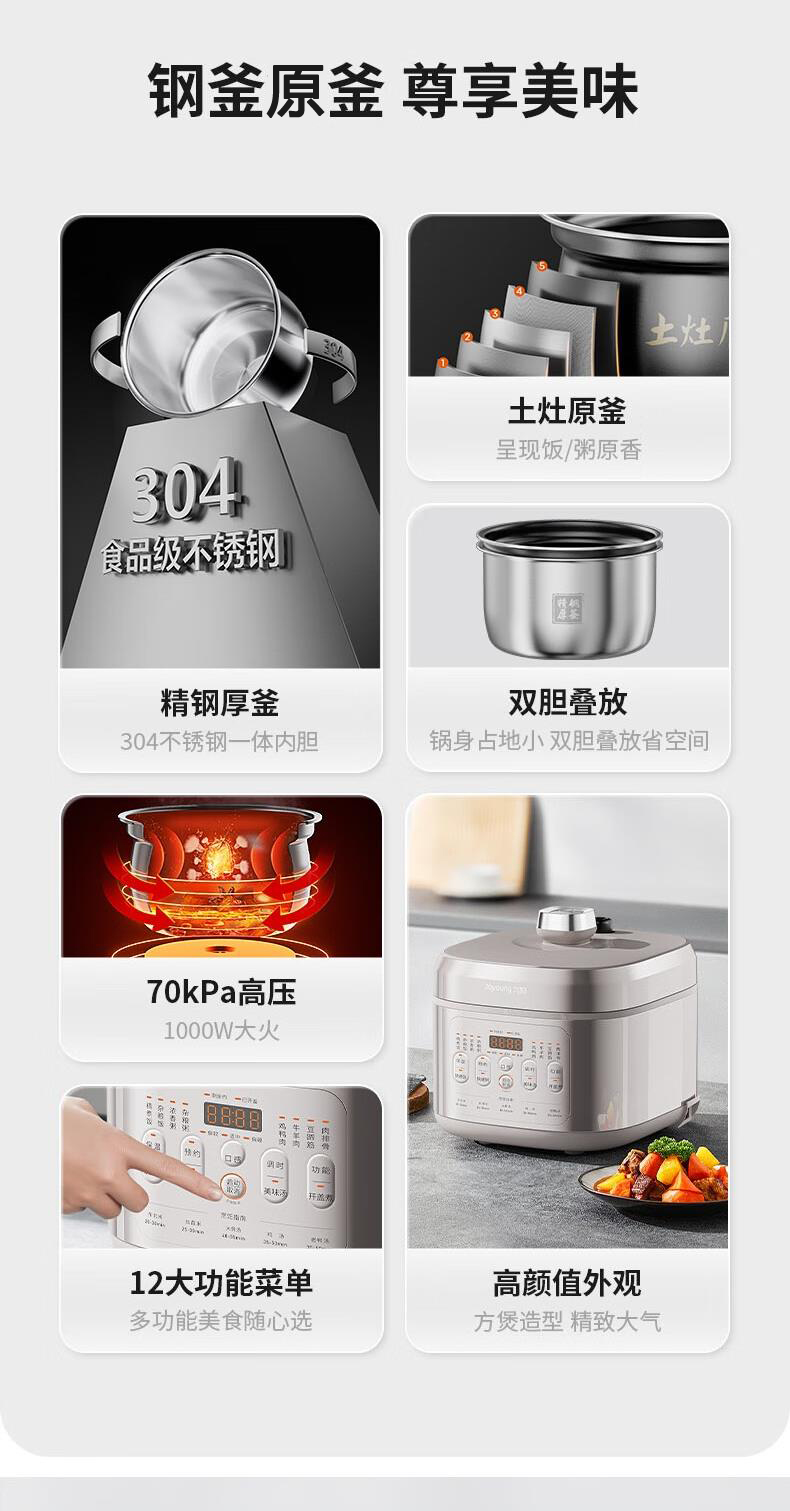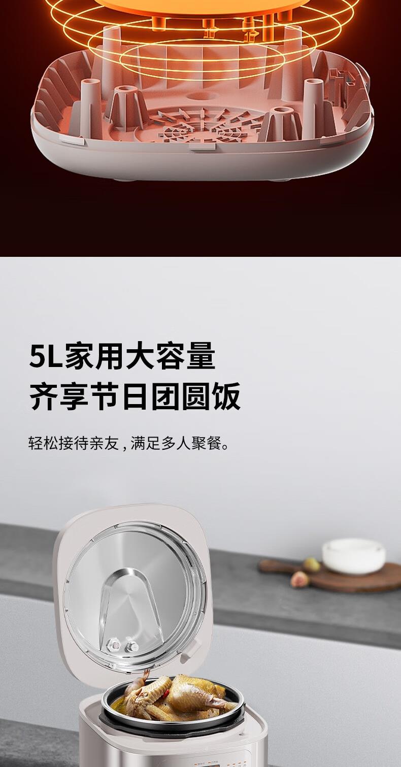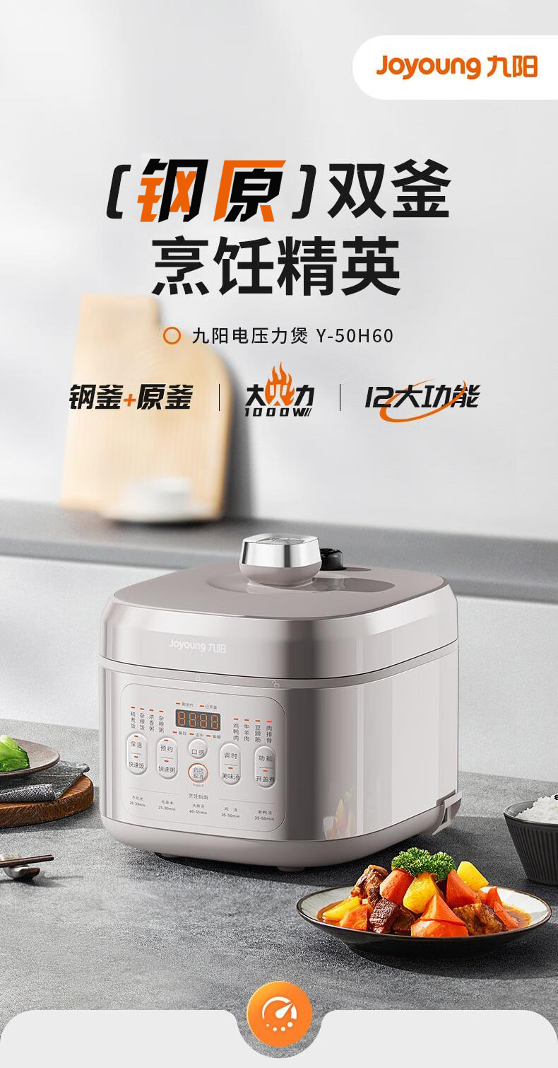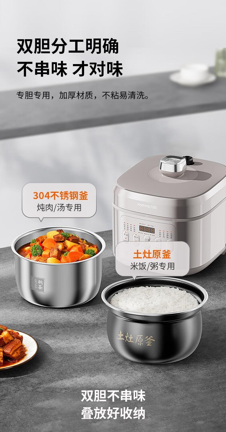 Joyoung九阳 5L电压力煲Y-50H60 双釜内胆 满足多人聚餐 72小时发货