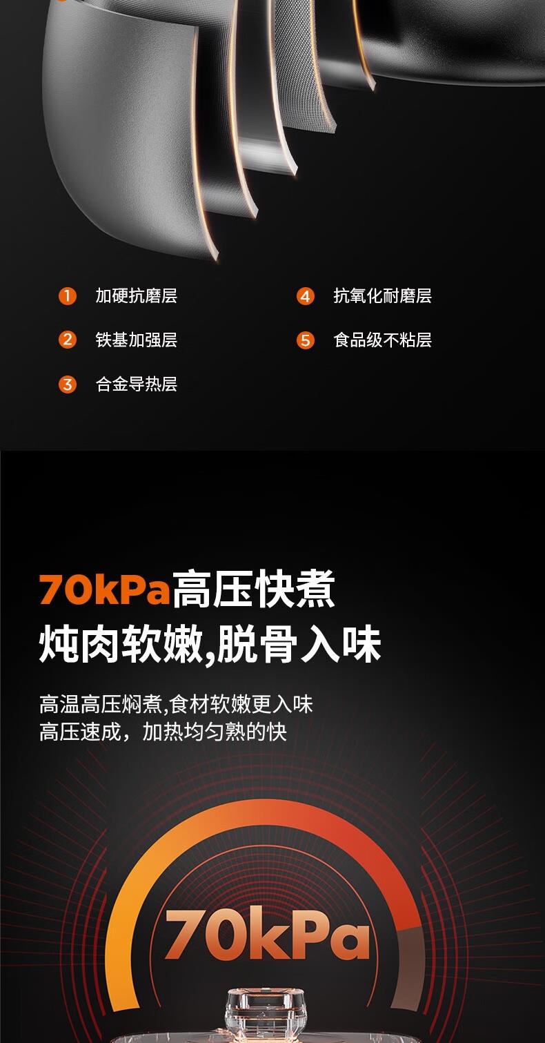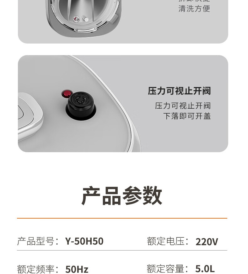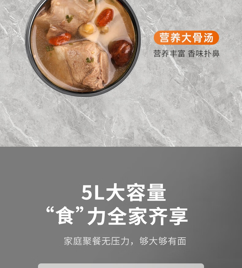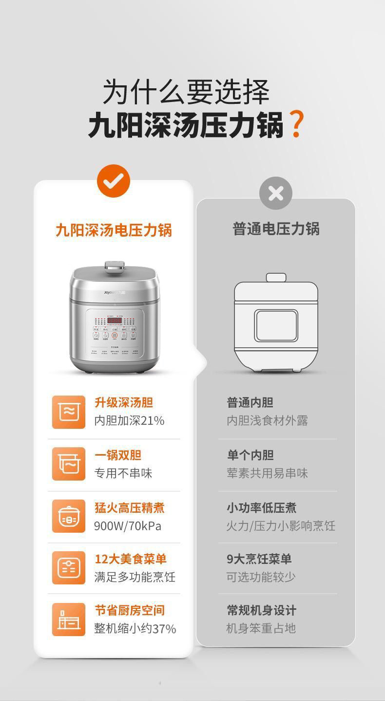 Joyoung九阳 5L电压力煲Y-50H60 双釜内胆 满足多人聚餐 72小时发货
