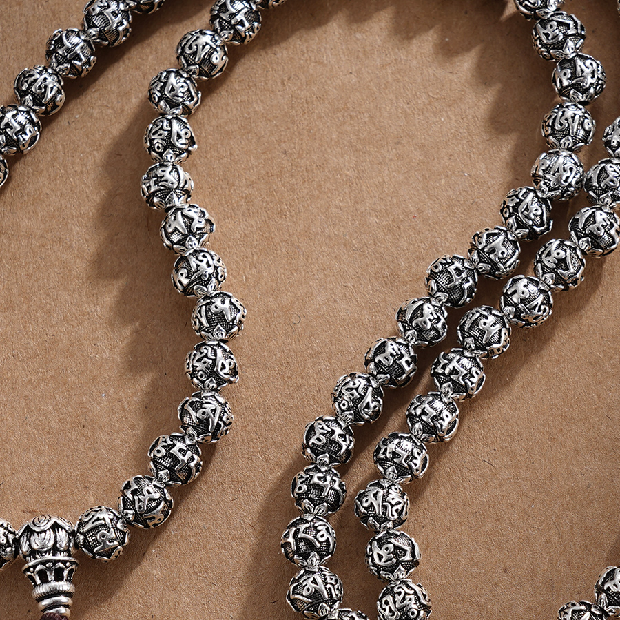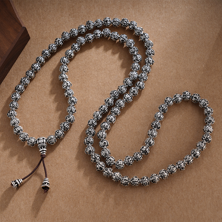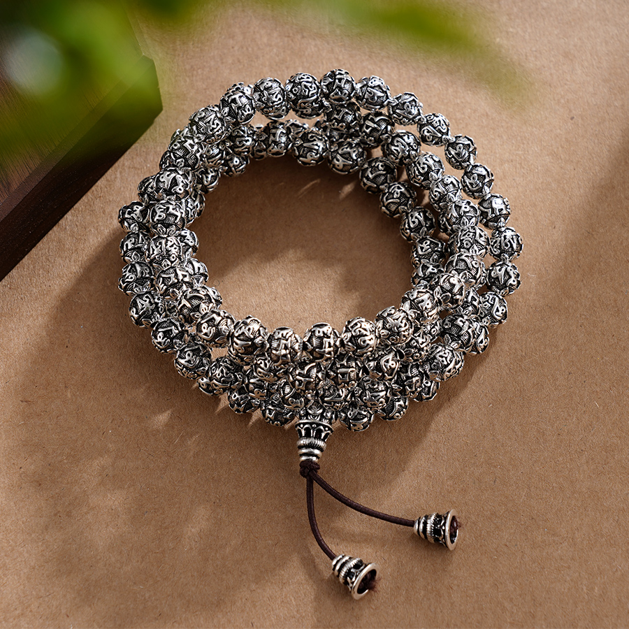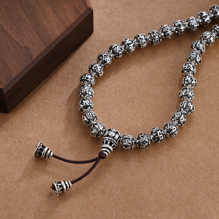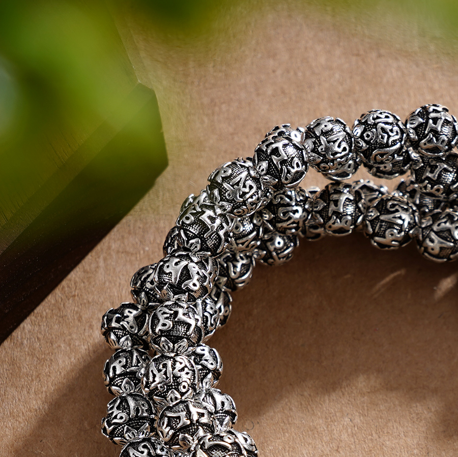 子佩集S990银真言手串【LZZY5】纯银仿古8mm黑手链2409
