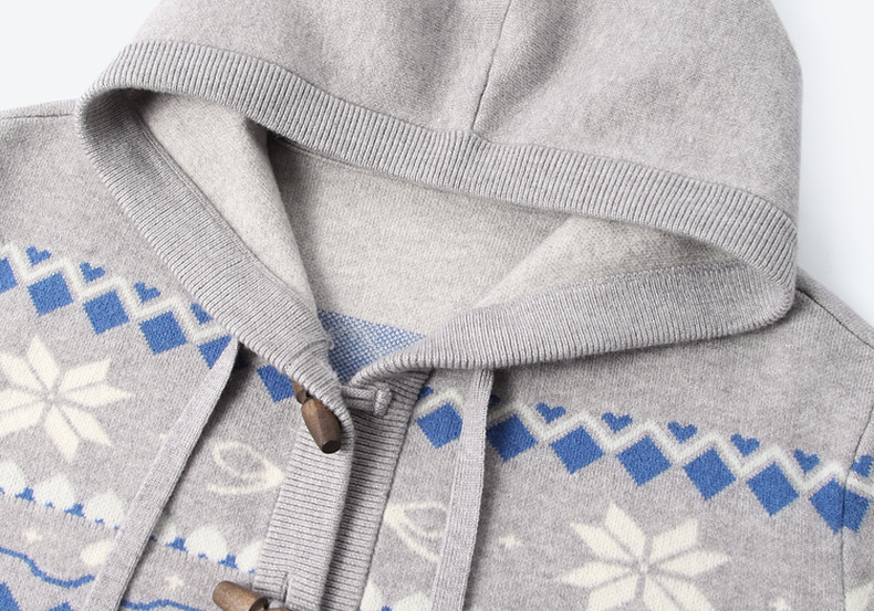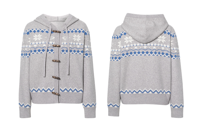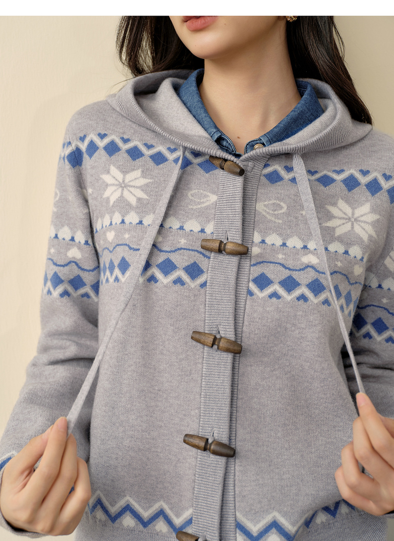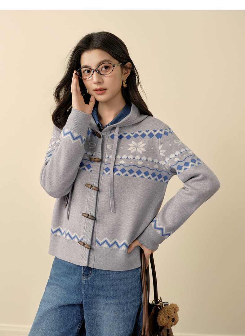 【严选】诗凡黎费尔岛提花连帽毛衣外套2025冬新款慵懒减龄撞色针织开衫女7GA333191