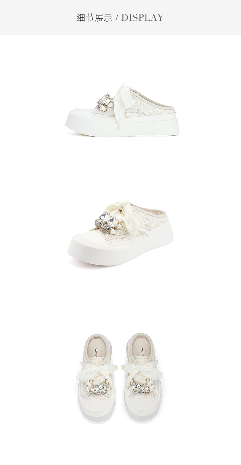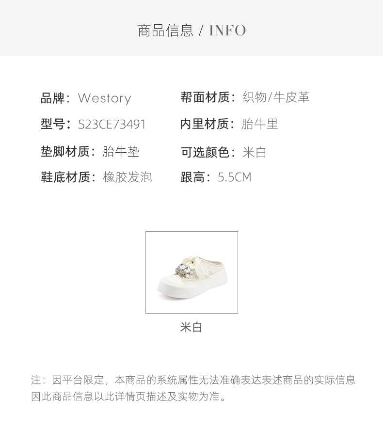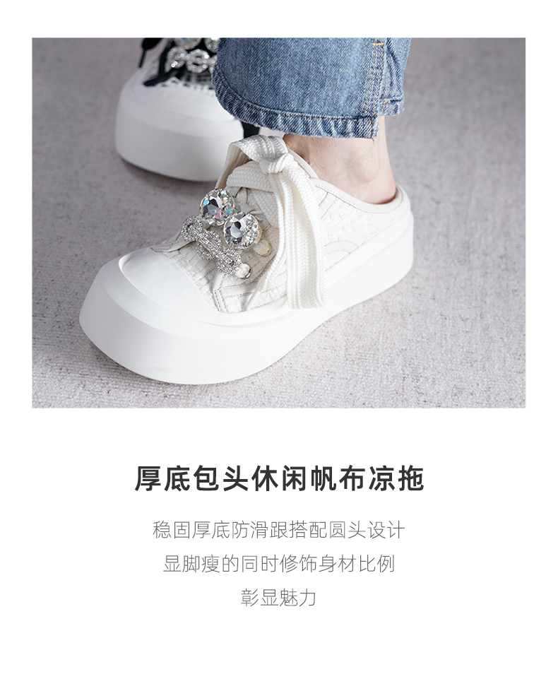 westory2023年秋季新款小香风水钻厚底圆头包头时尚百搭拖鞋S23CE73491