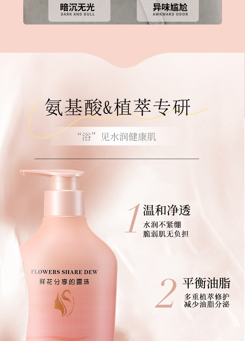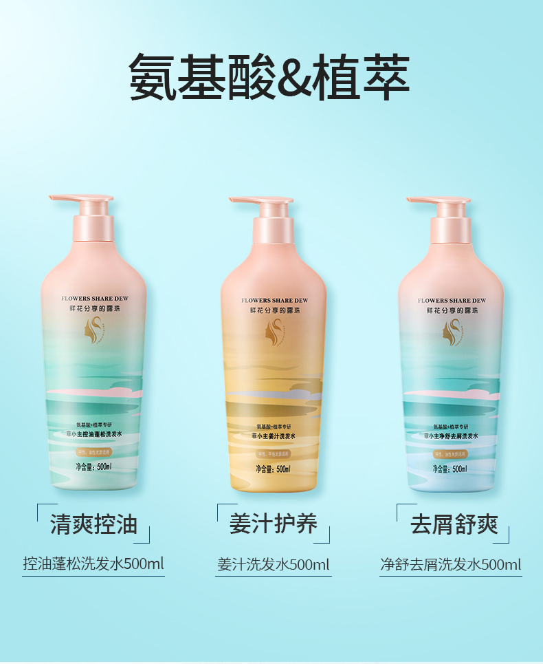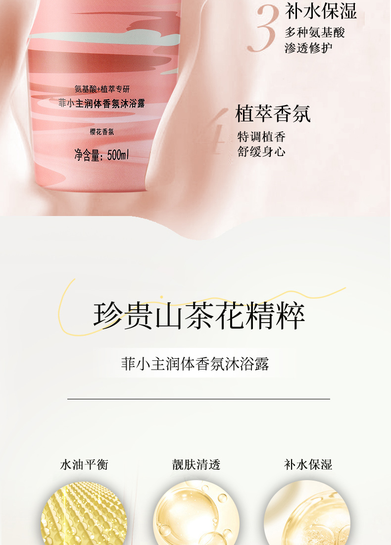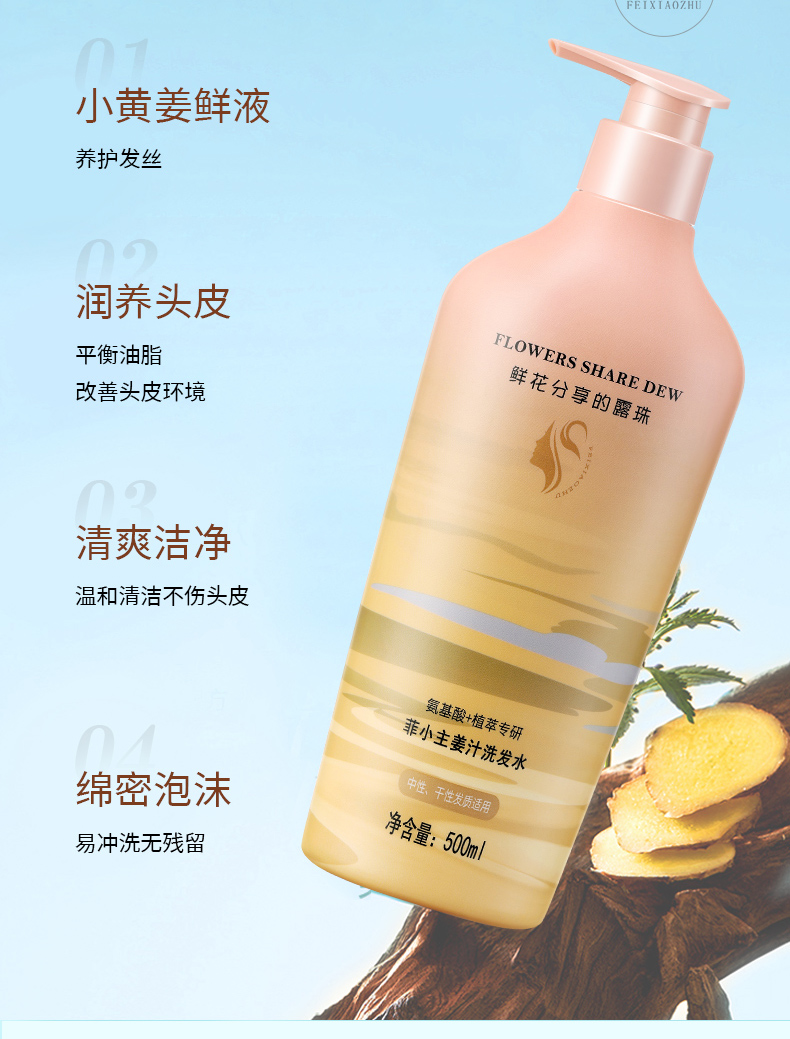 自营 (菲小主)-氨基酸植萃专研 洗发水 控油蓬松去屑柔顺改善毛躁干枯持久留香沐浴露 500ml