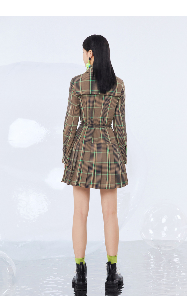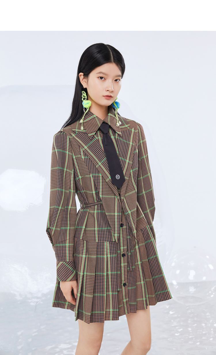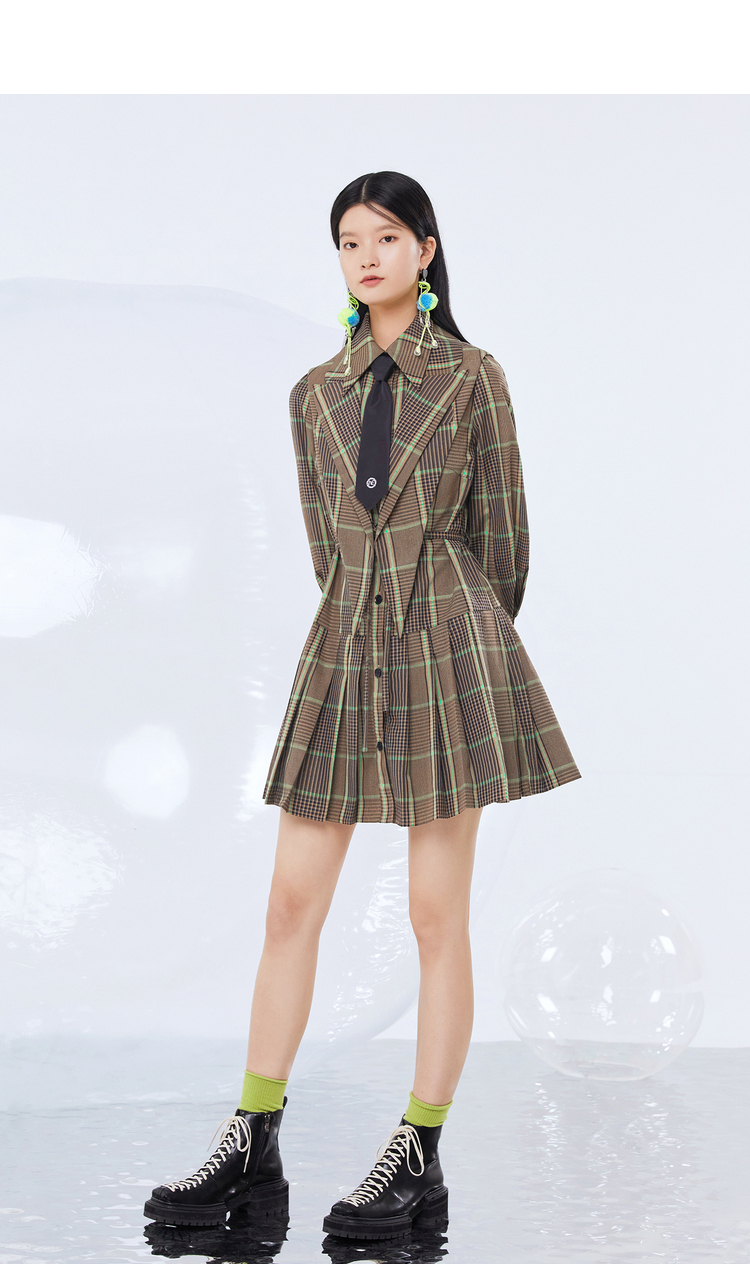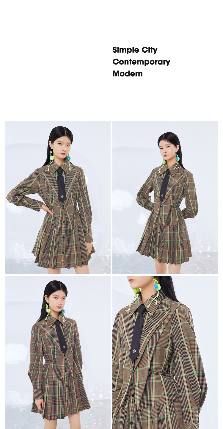 NEELLY纳俪商场同款翻领设计衬衫连衣裙女单排扣百褶裙中长A字裙N21092Y01223