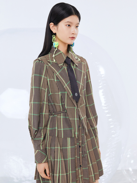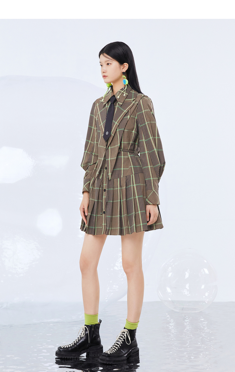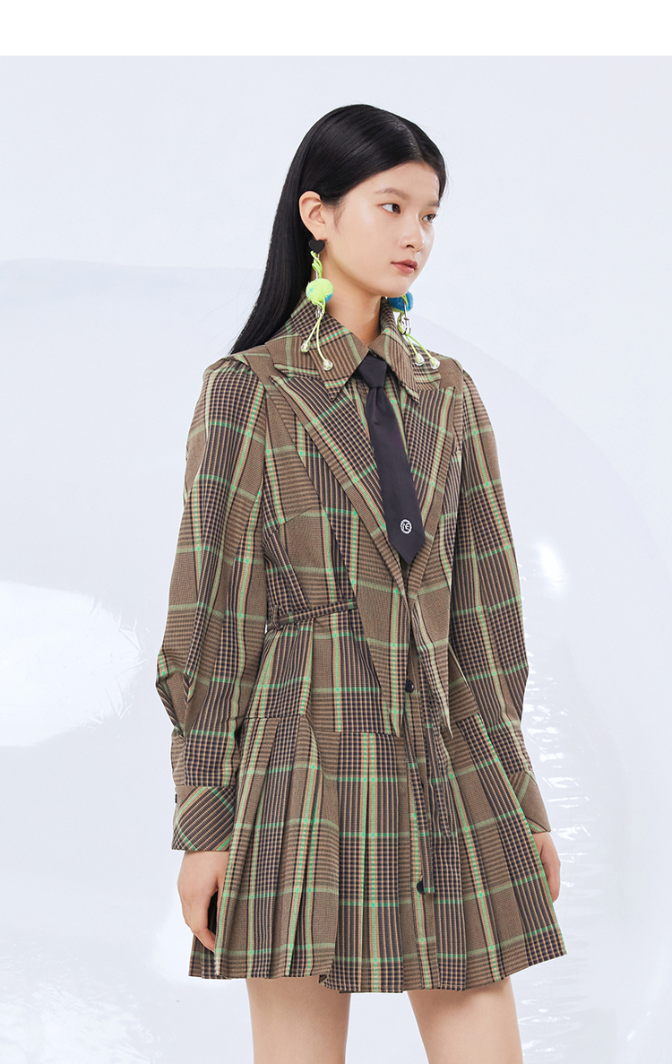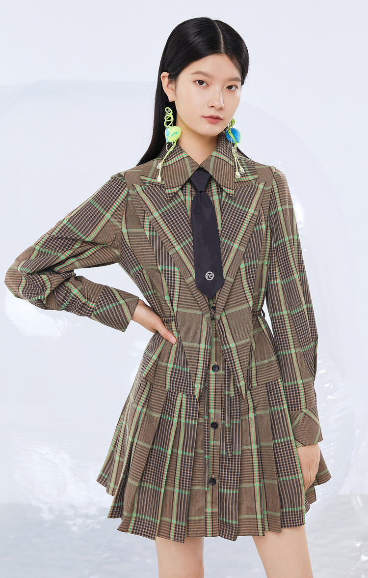 NEELLY纳俪商场同款翻领设计衬衫连衣裙女单排扣百褶裙中长A字裙N21092Y01223