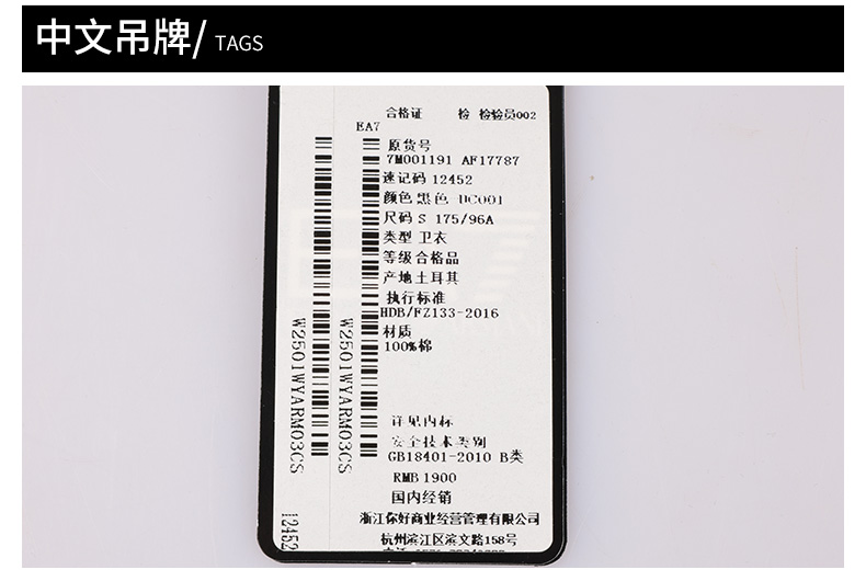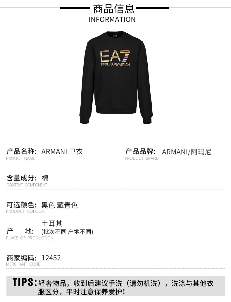 【超惠秒】Armani EA7 男士全棉运动休闲卫衣外套 12452