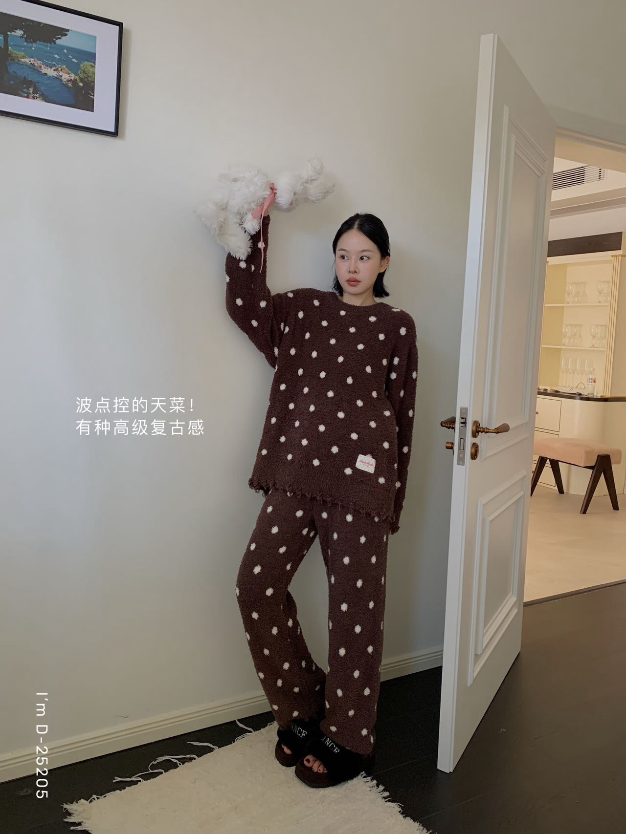 深棕波点款则是另一种风格