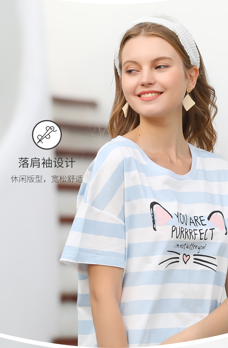 I'd爱帝精梳纯棉夏季薄款卡通字母印花家居睡裙