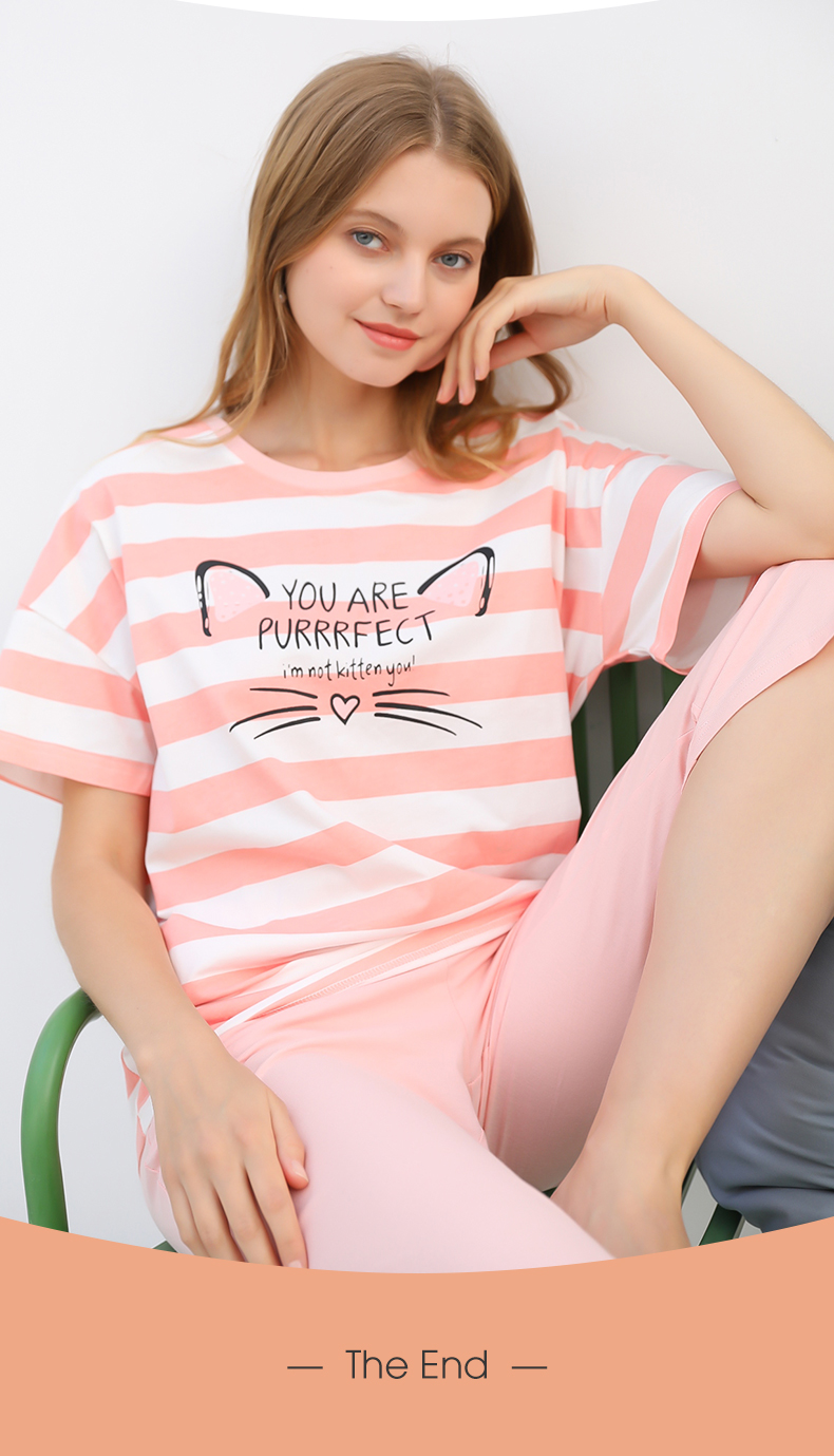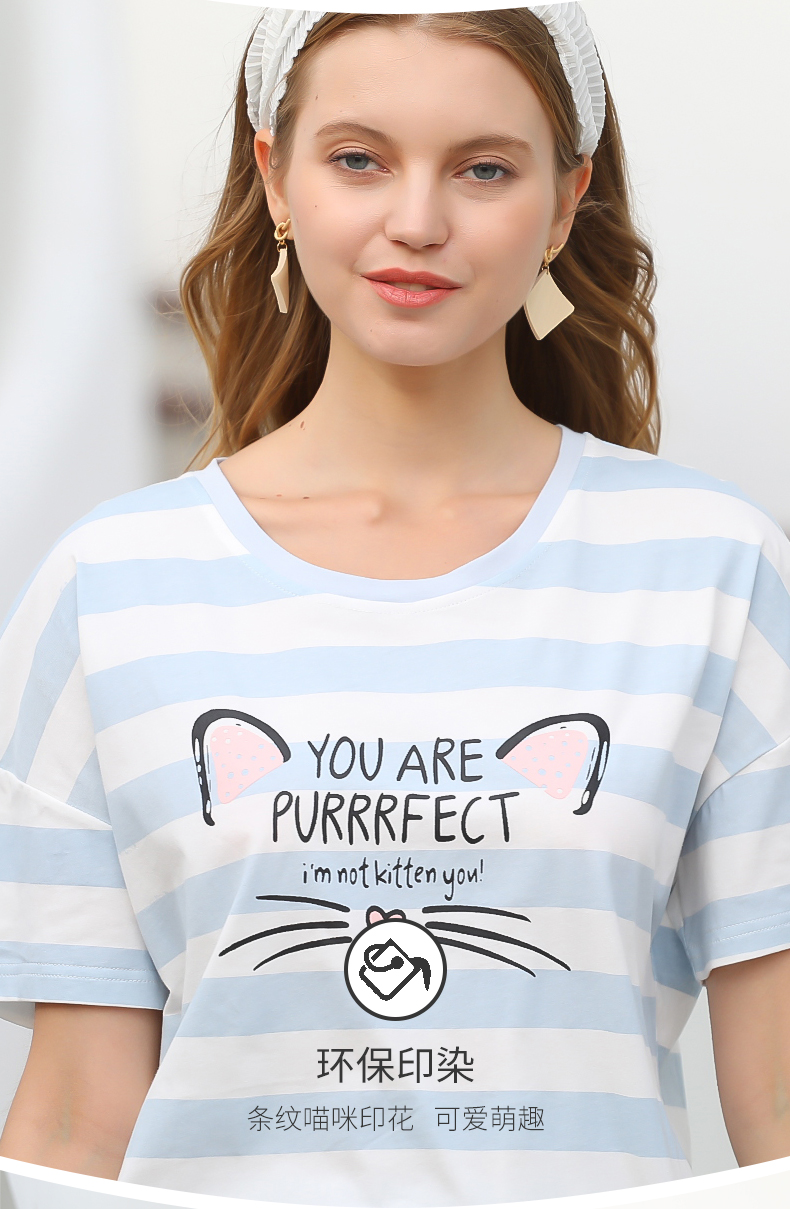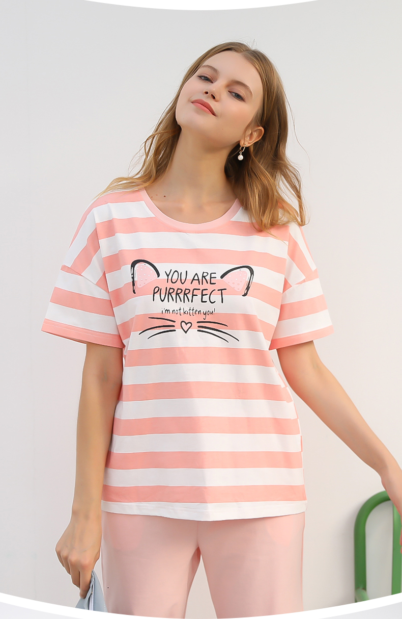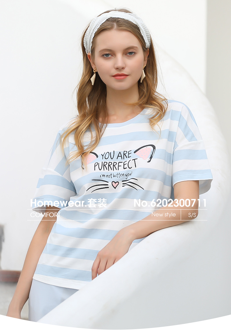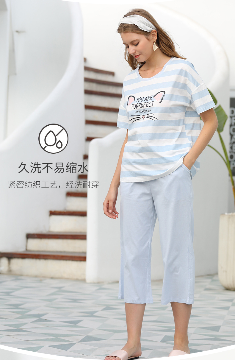 【断码清仓】爱帝女式条纹印花短袖中裤家居套