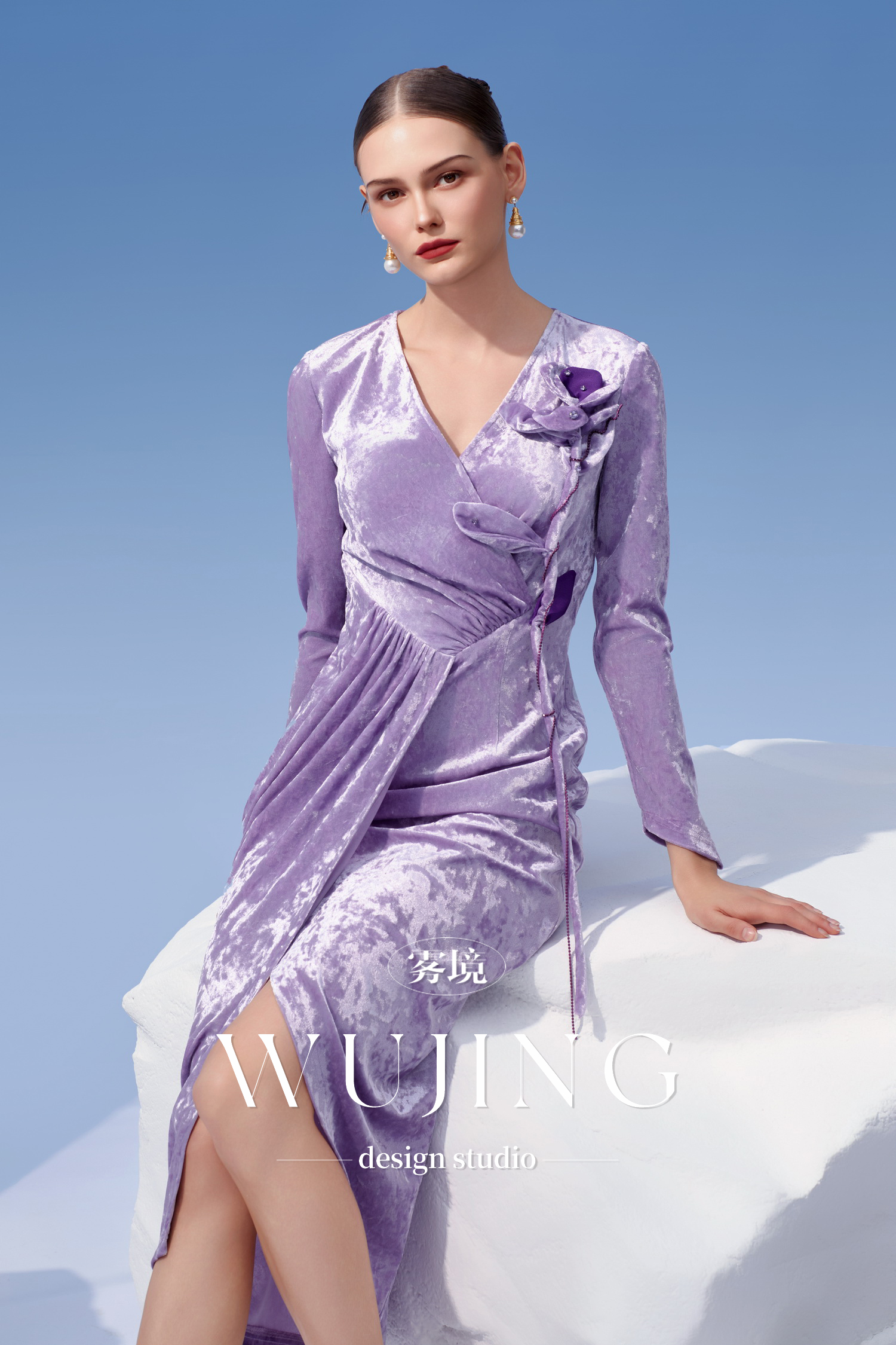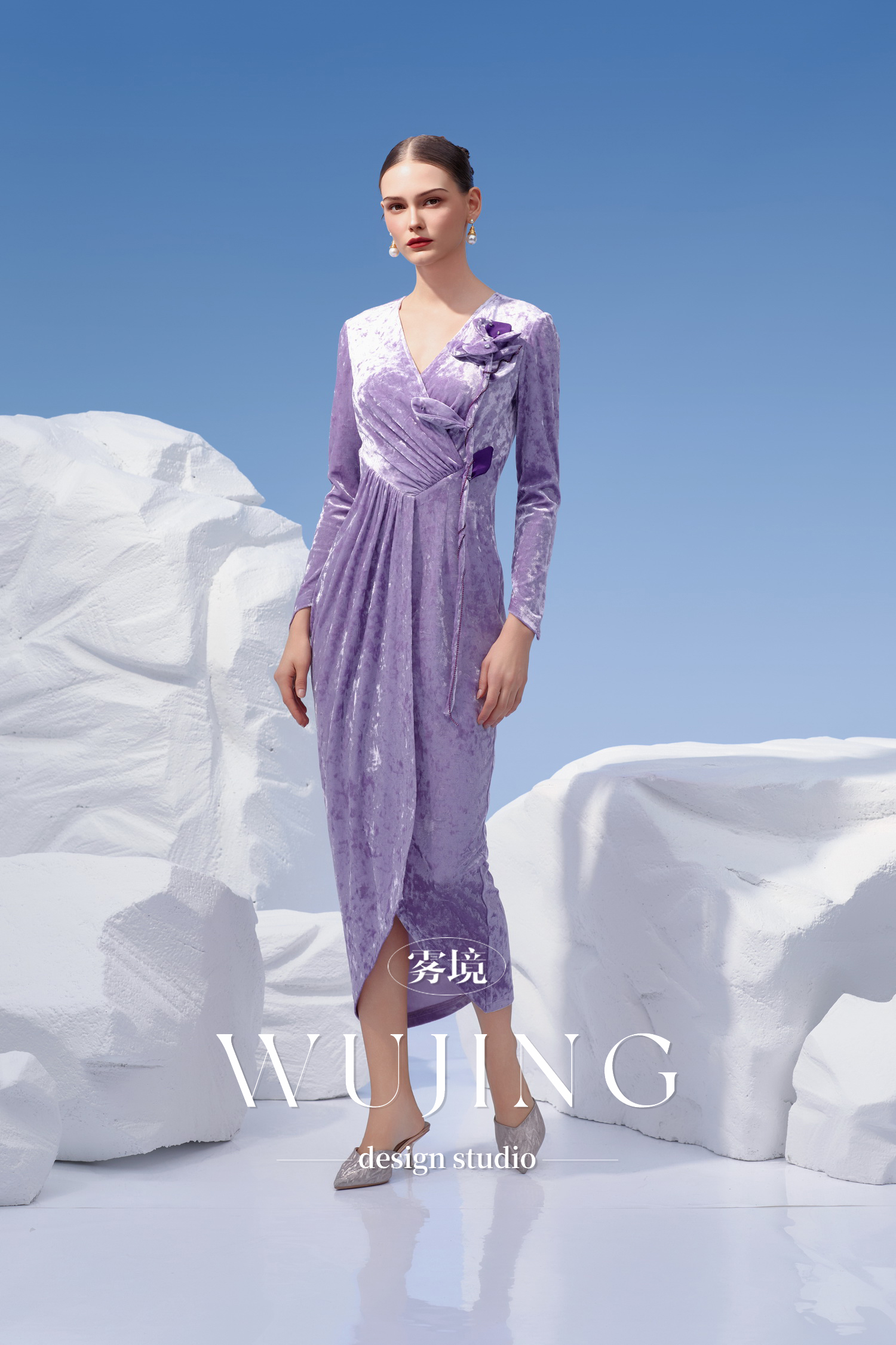 【雾境定制款】紫荆花开浪漫优雅一片式裹身裙无论任何身材都能穿出量身定做的效果2202190