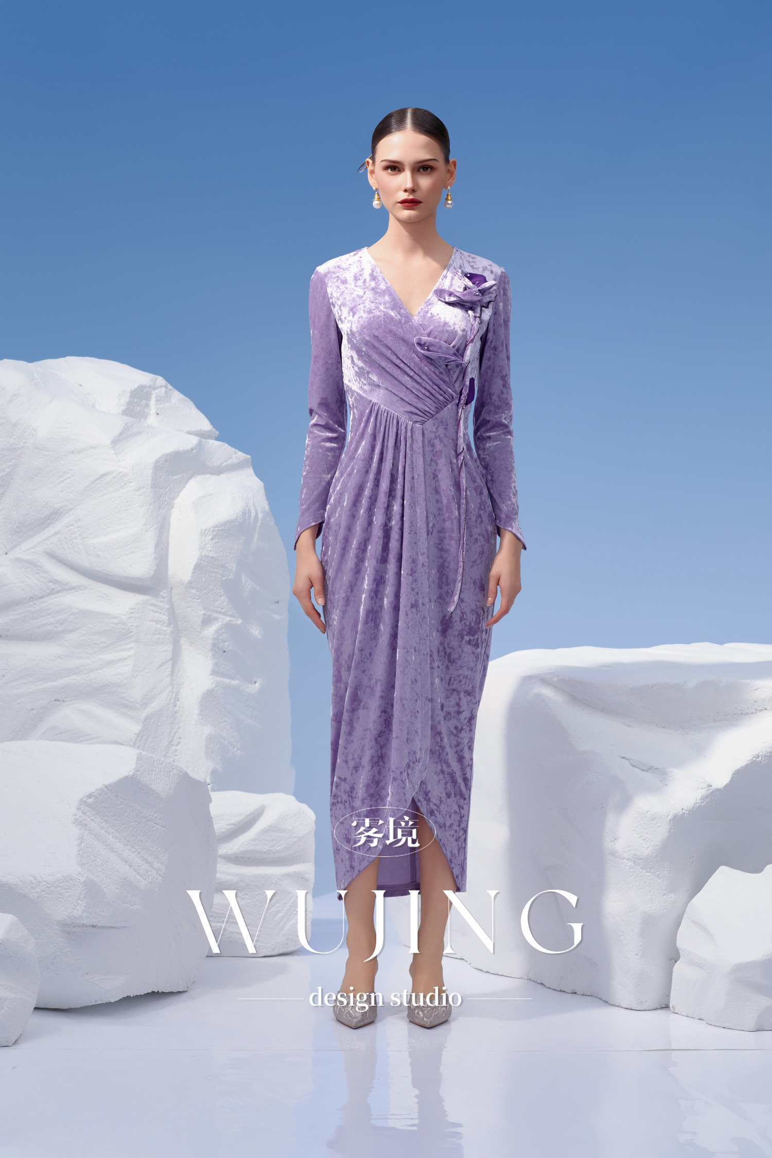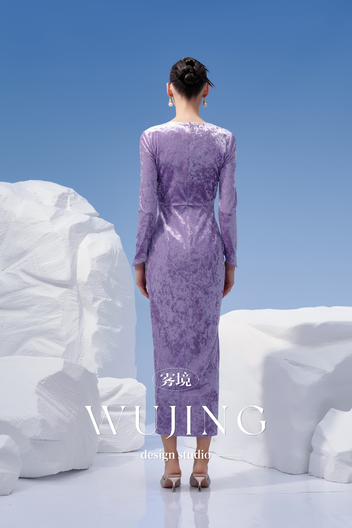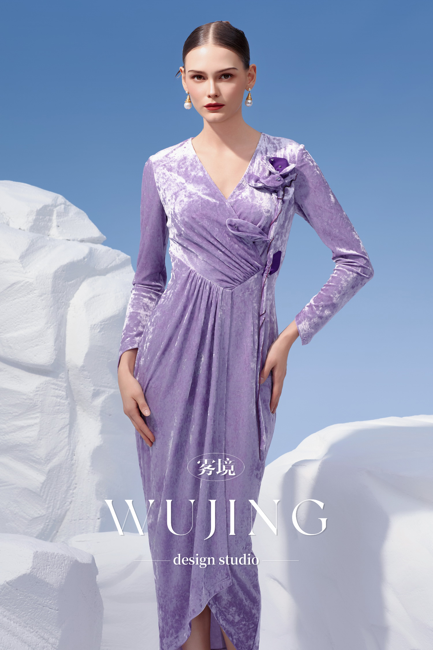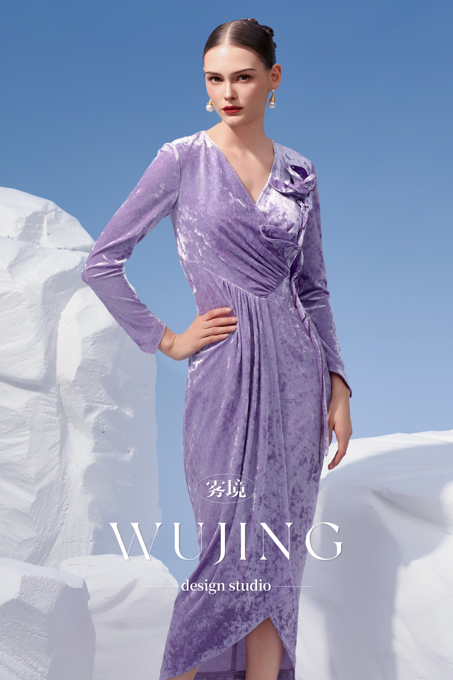 4202070 淡紫静怡 进口钻石绒连衣裙 雾境