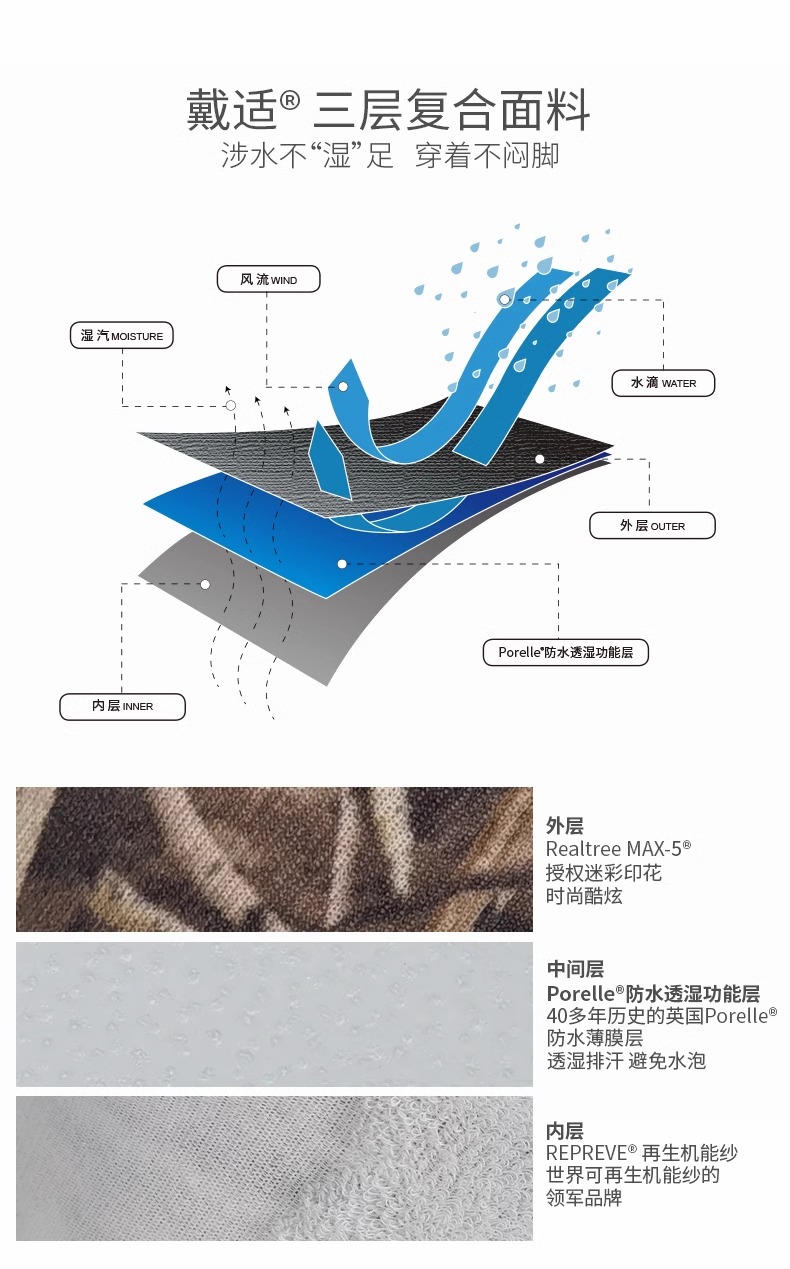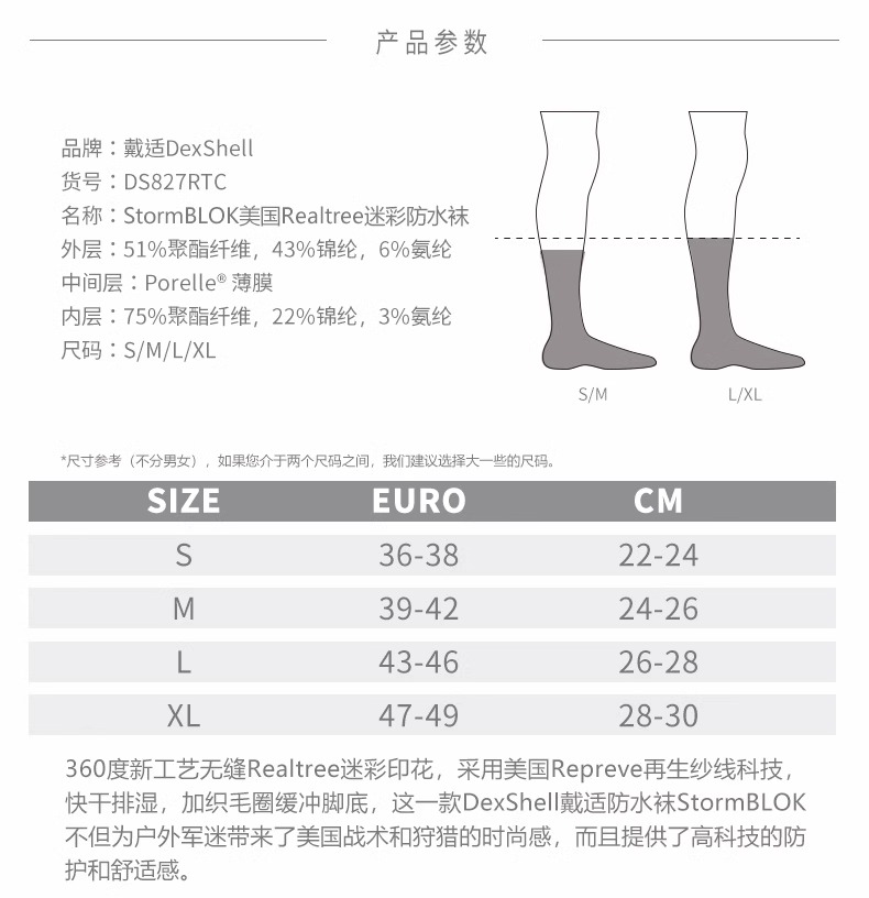【史低!149秒杀!】DexShell戴适 袜男士迷彩防水袜女士户外透湿防风越野跑步袜DS827