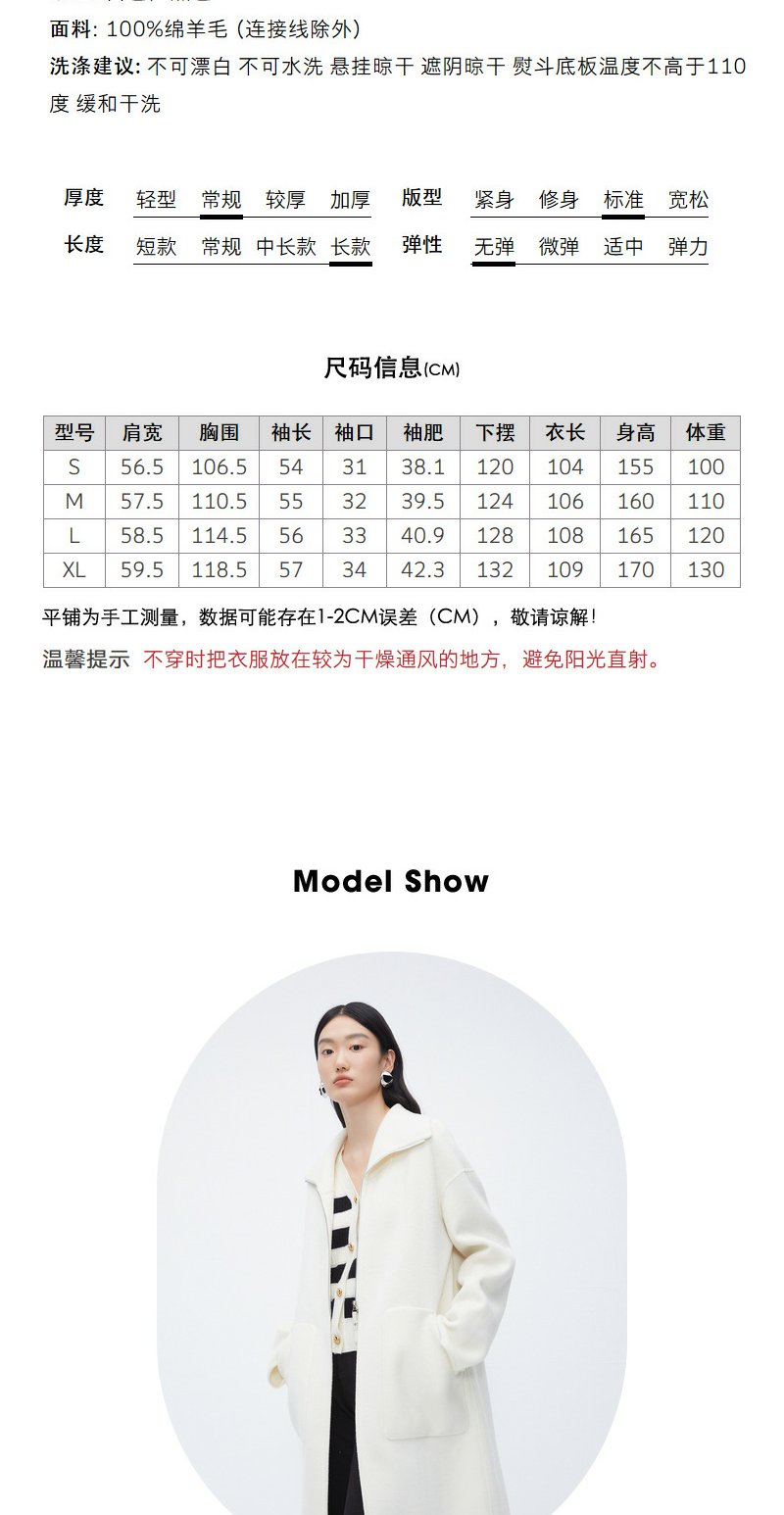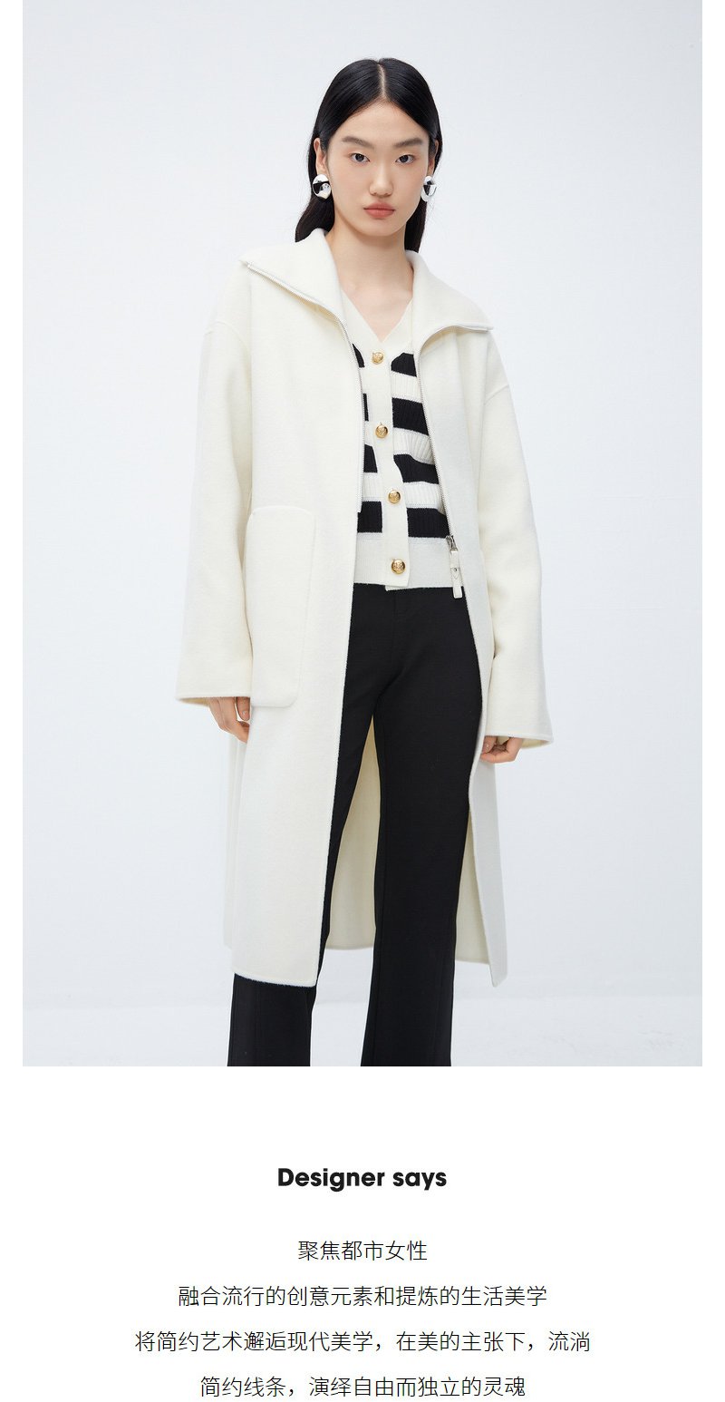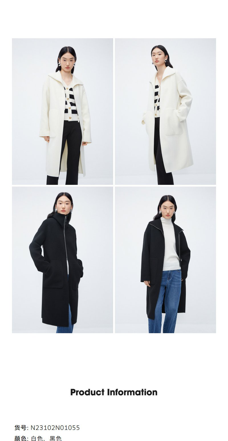 NEELLY纳俪商场同款*绵羊毛双面呢大衣女中长款伯明翰御姐穿搭N24104N04570