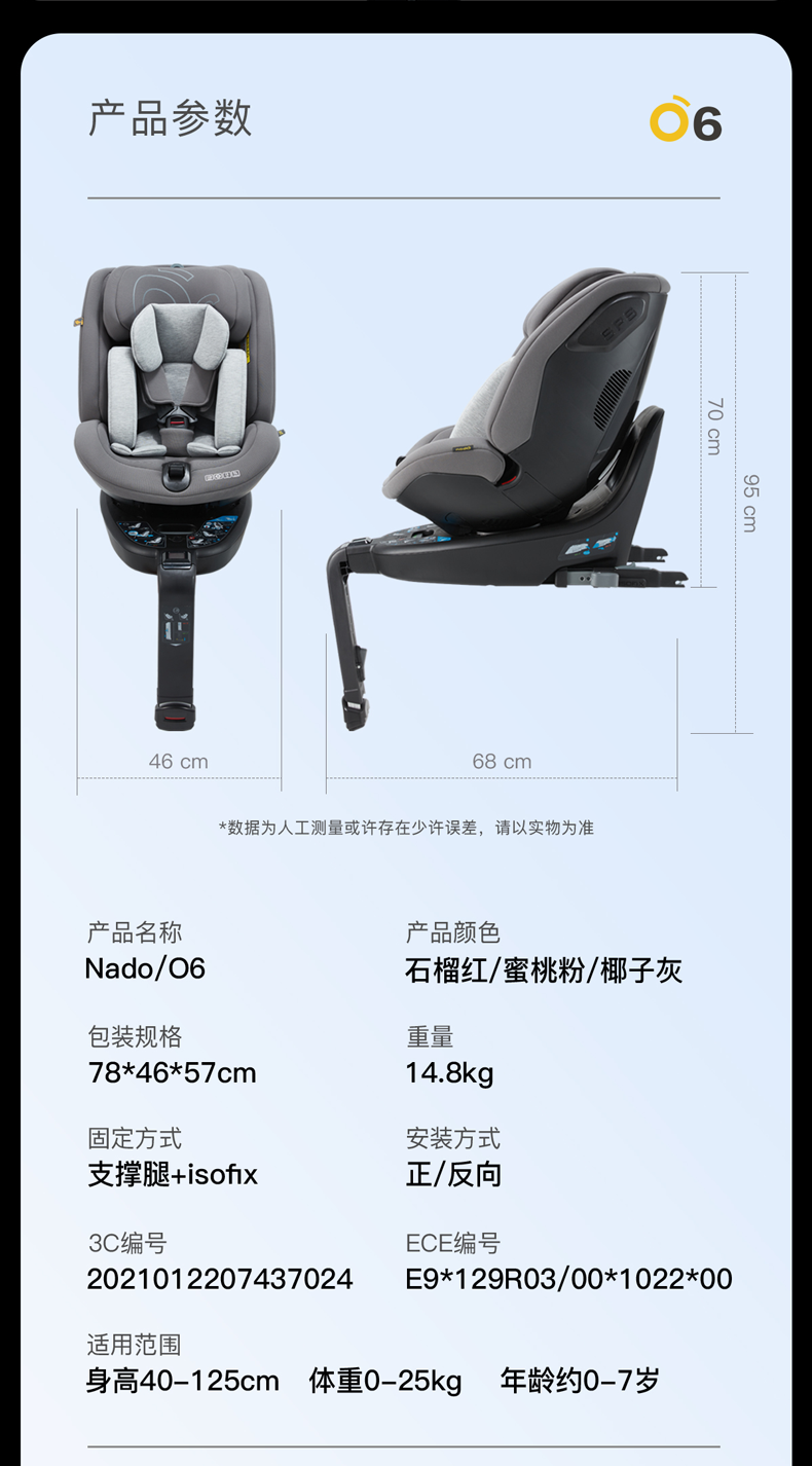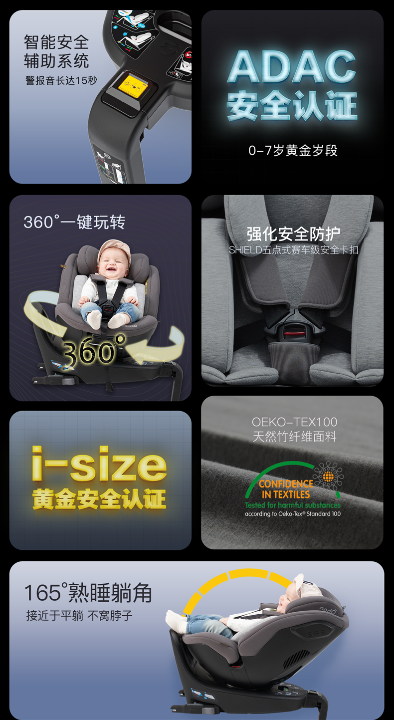 德国nadO O6 Plus 智能安全座椅车载0-7岁360度旋转婴儿宝宝汽车用