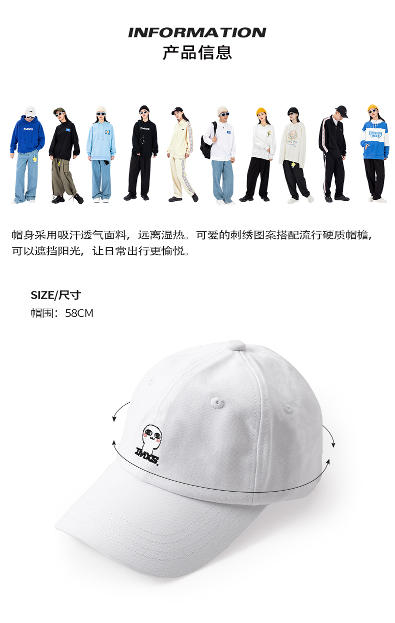 IMXS联名汤圆酱 潮牌情侣棒球帽百搭纯色帽子可调节鸭舌帽休闲
