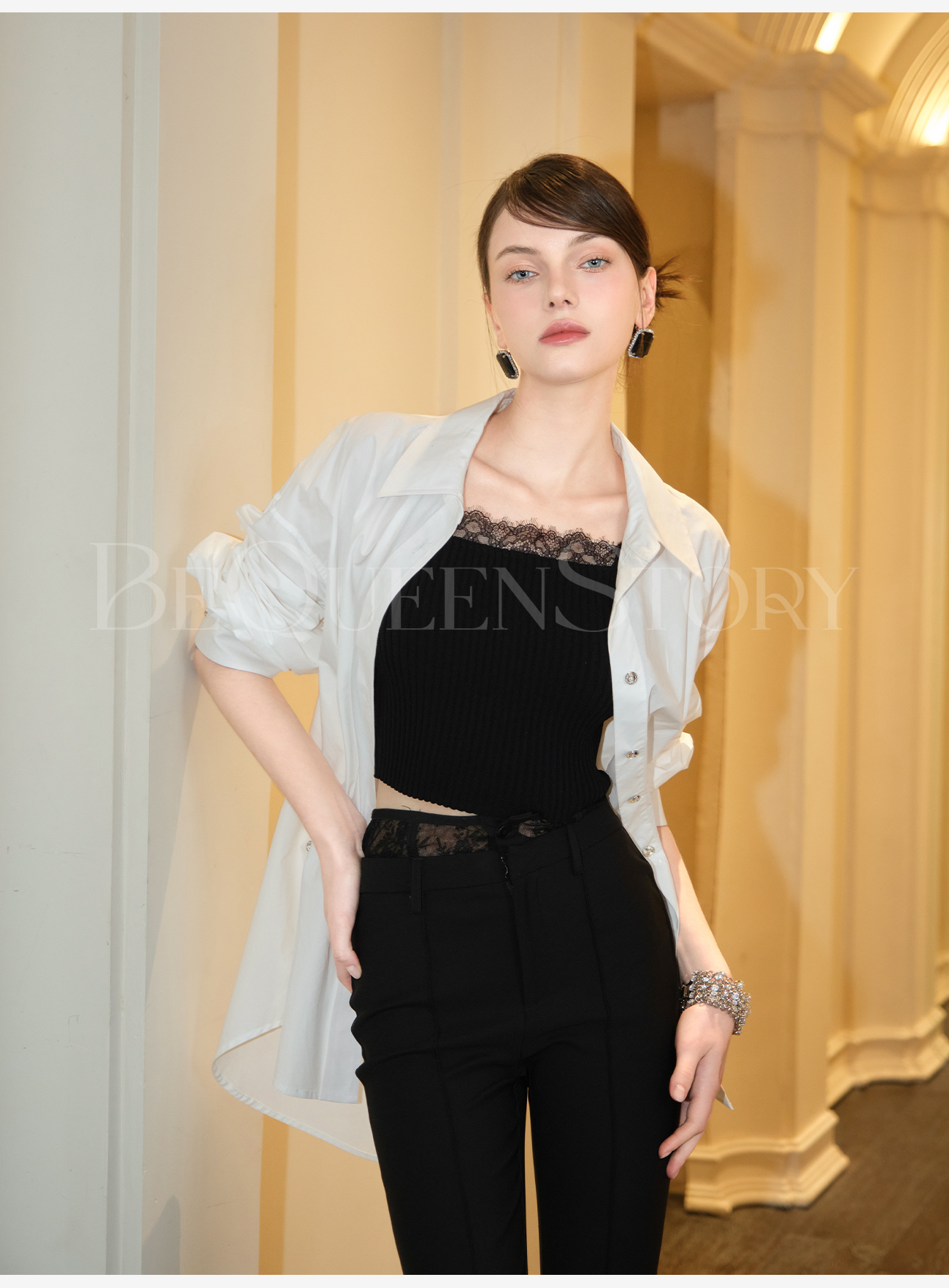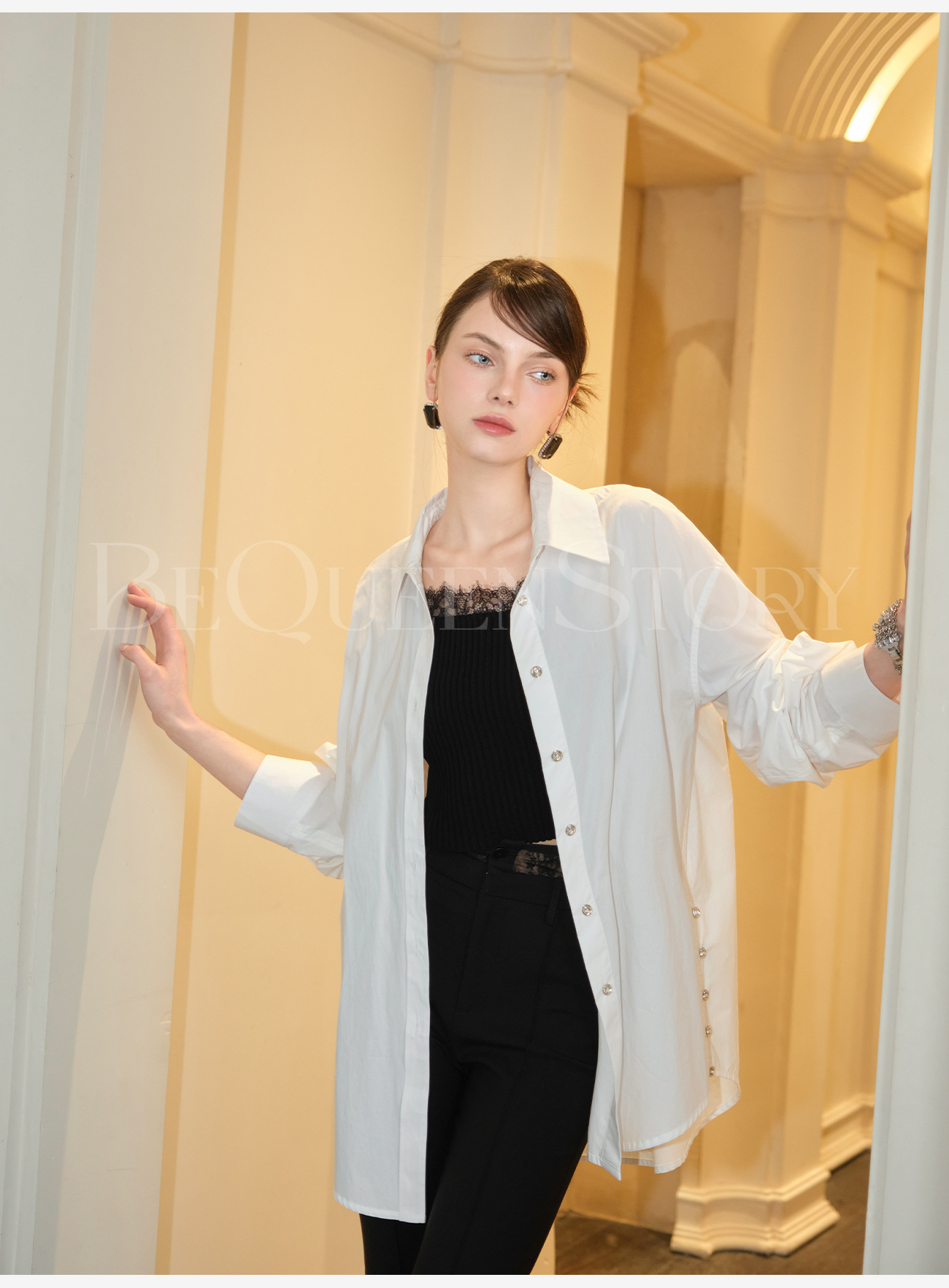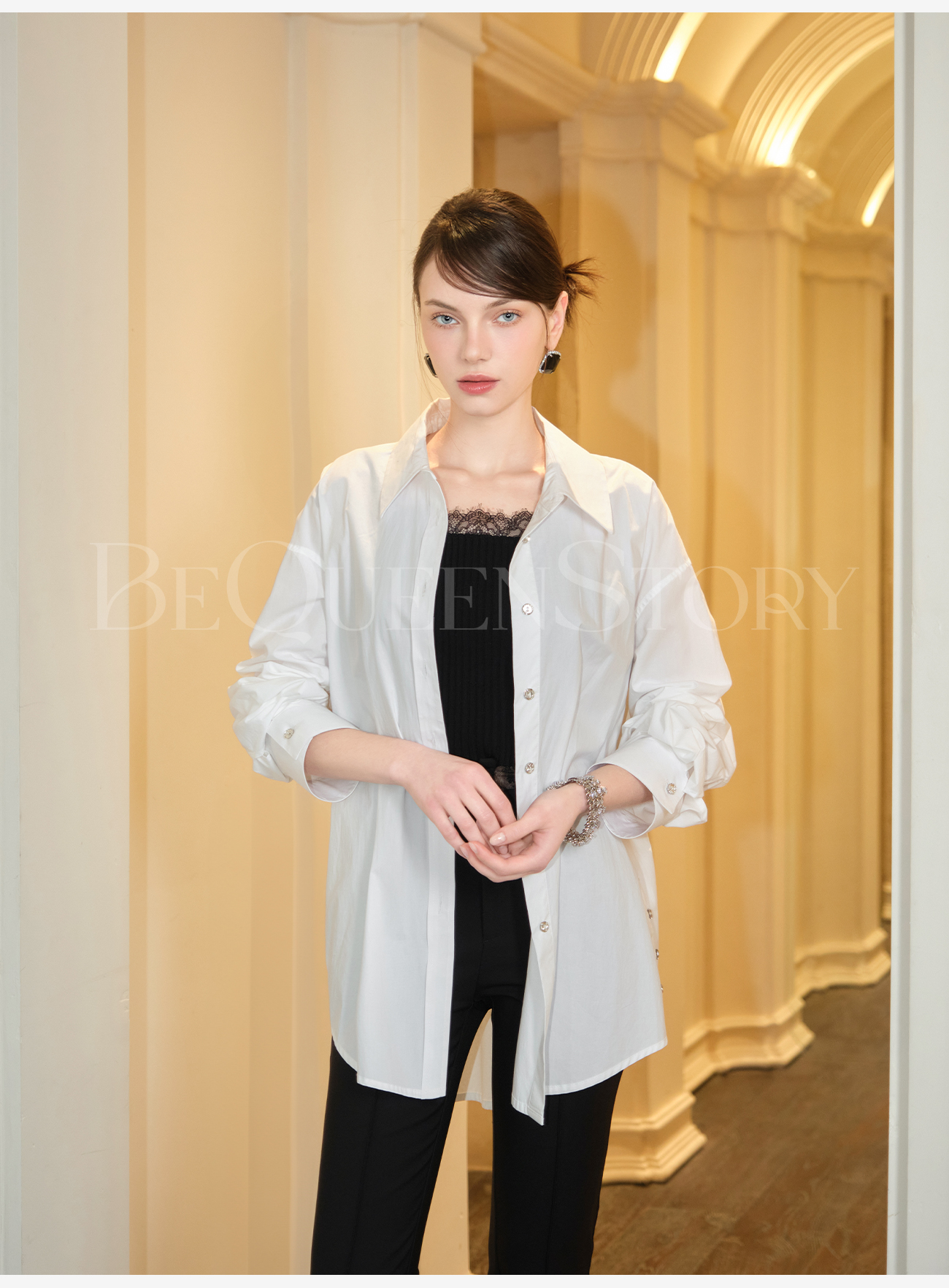 余潇潇【简奢女主】高智淡人气质百搭宽松版翻领长袖衬衫