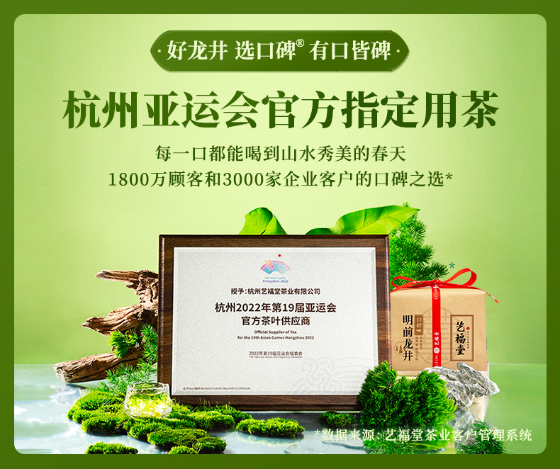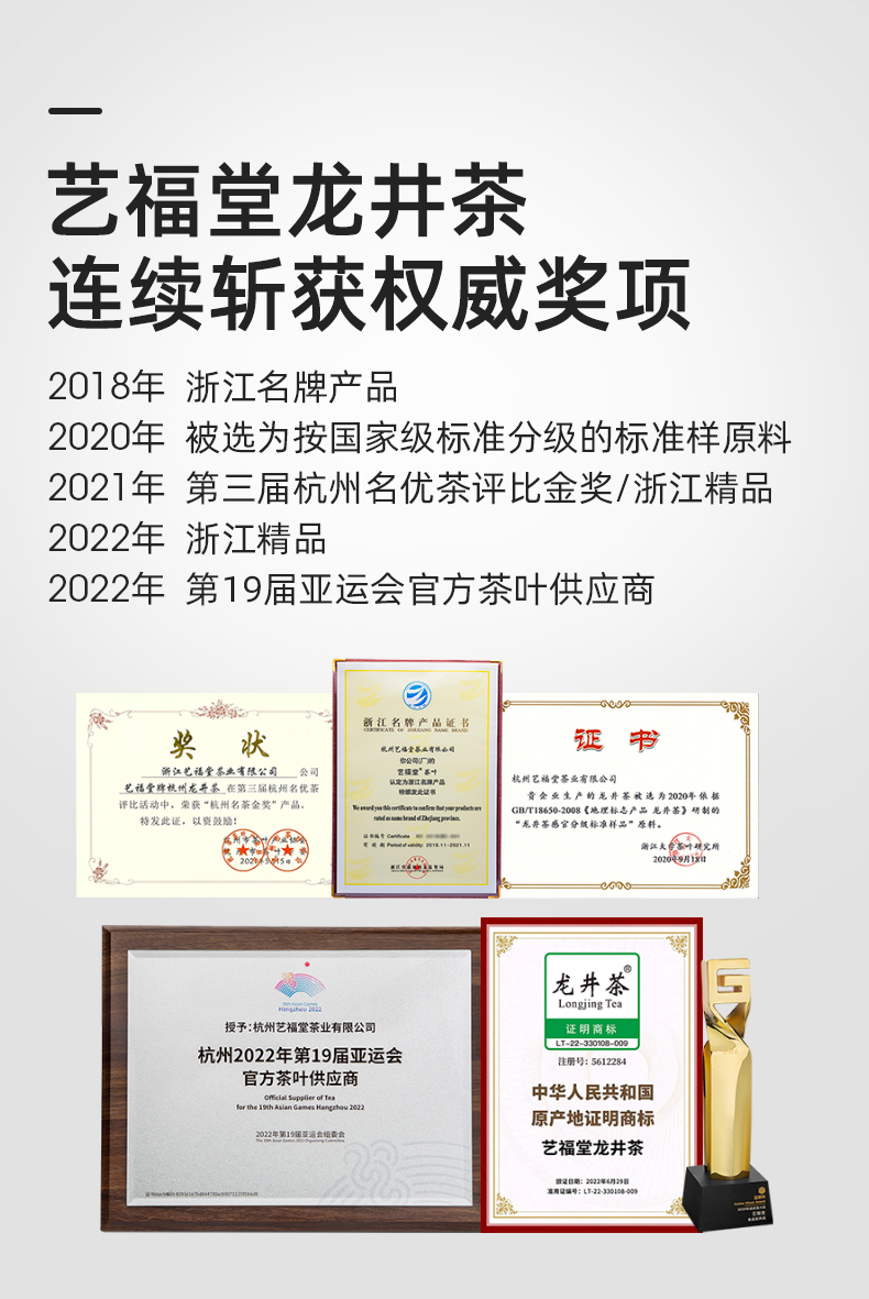 “艺福堂茶业”创立于2008年,是一家集生产、销售、科研为一体的现代茶业企业,主打西湖龙井,兼营世界各地名优茗茶及花草茶,是中国茶行业为数不多的年销售额过5亿的品牌之一,是杭州亚运会官方指定用茶!