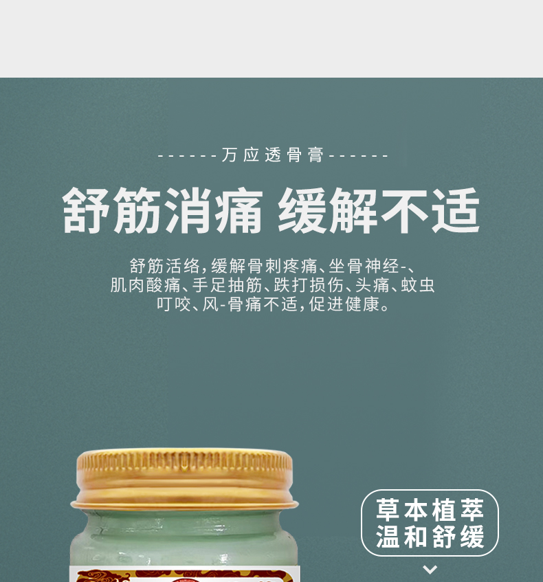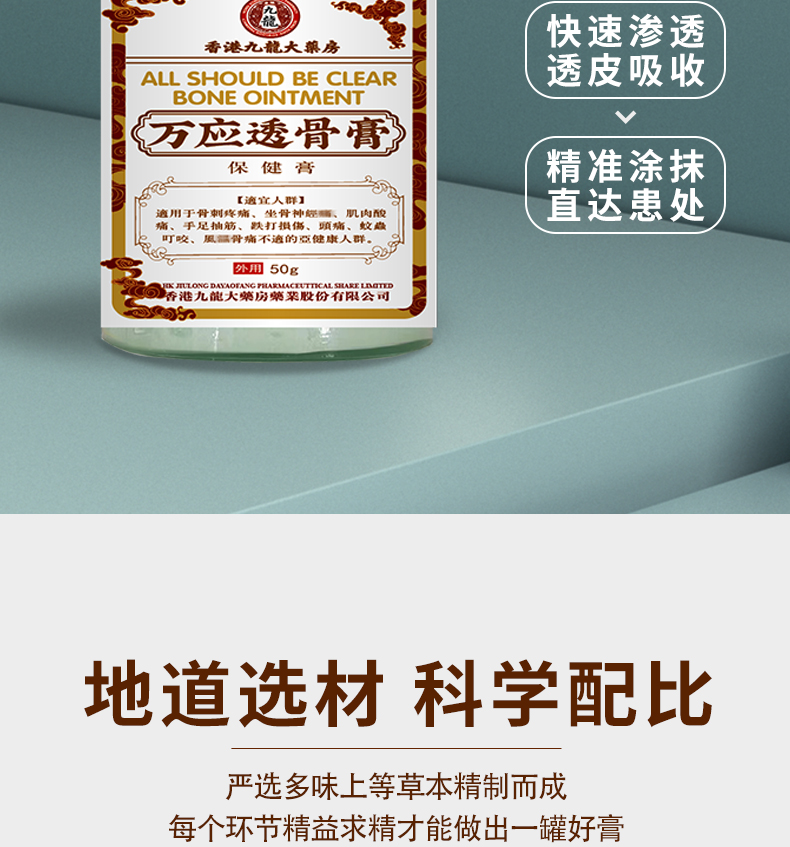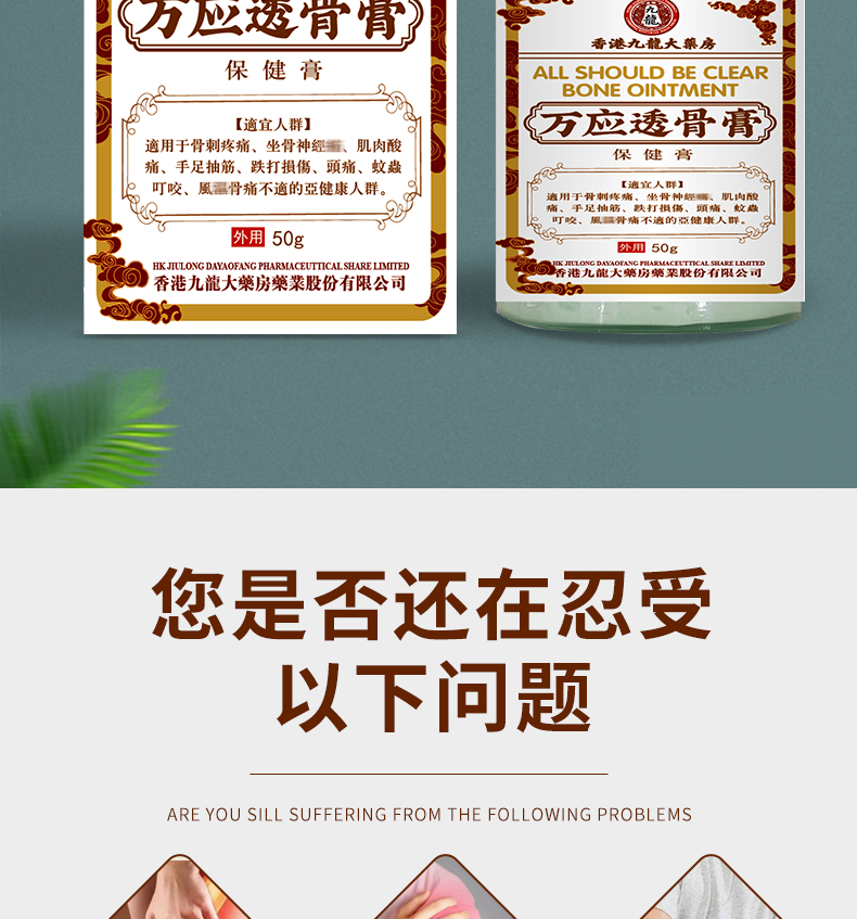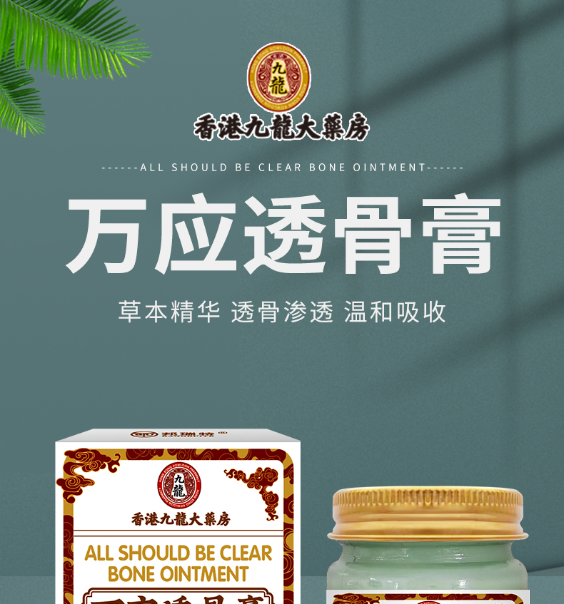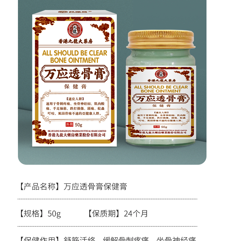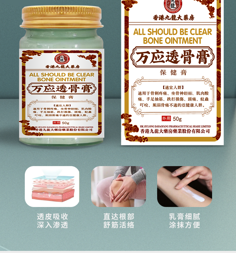 【2瓶特惠装】香港九龙大药房万应透骨膏 舒筋活络膏保健膏 疼痛抽筋草本护理骨刺疼痛 50g外用