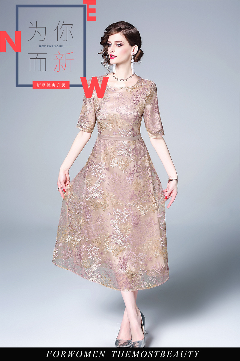复古网纱重工刺绣碎花连衣裙YFN-19055