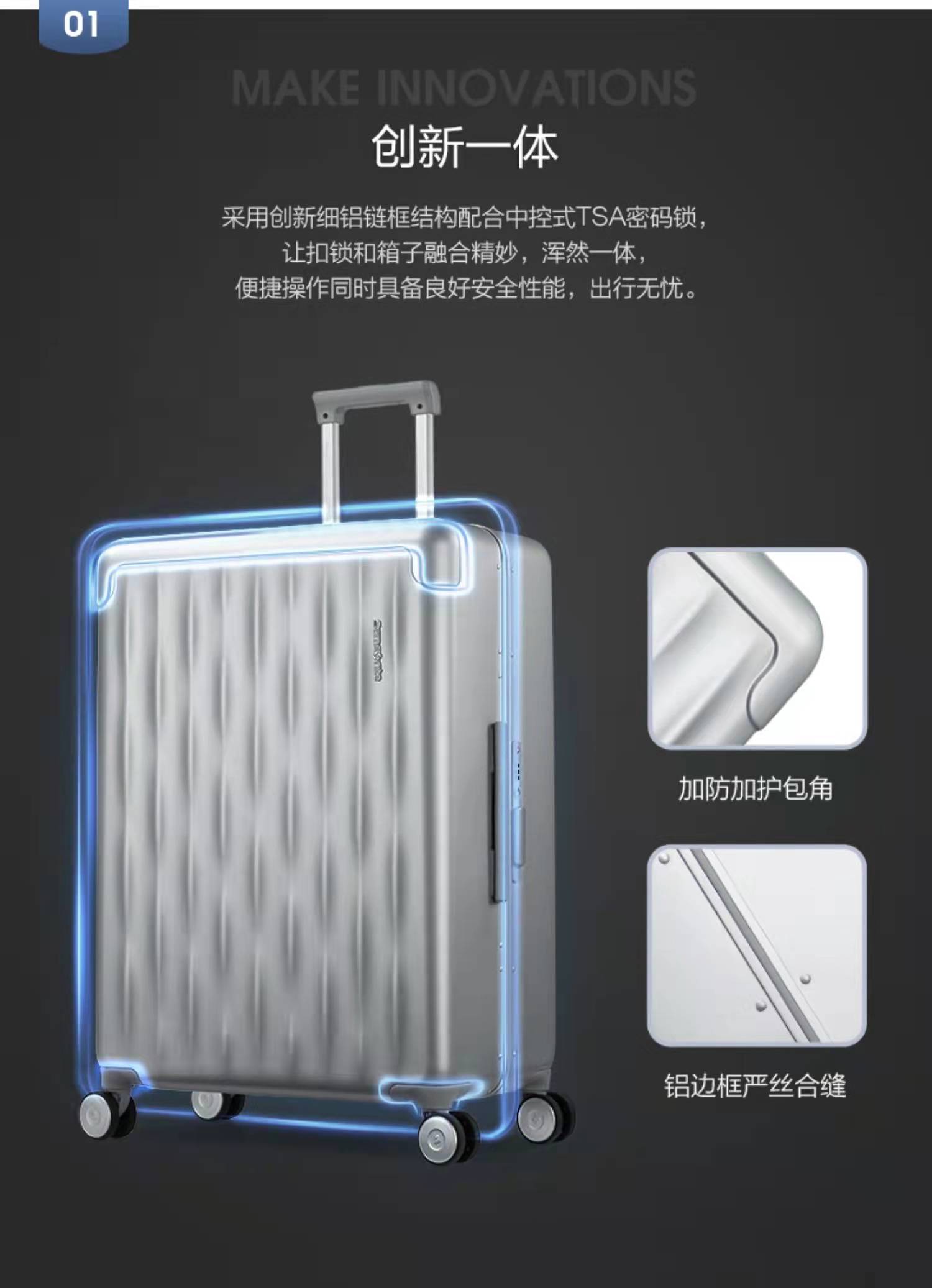 新秀丽高颜值飞机轮PC材质拉杆箱TT9