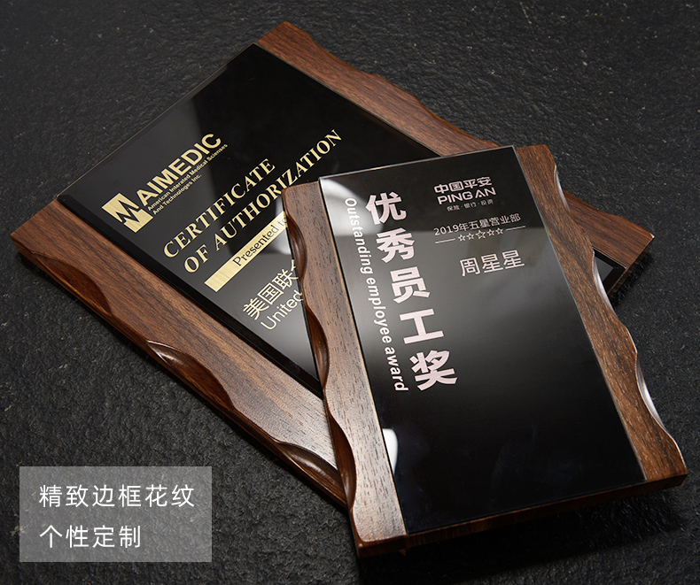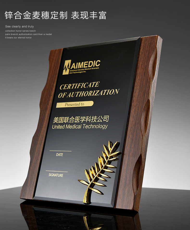 金属麦穗胡桃色木质奖牌定制水晶奖牌奖杯定做加盟授权代理商牌匾