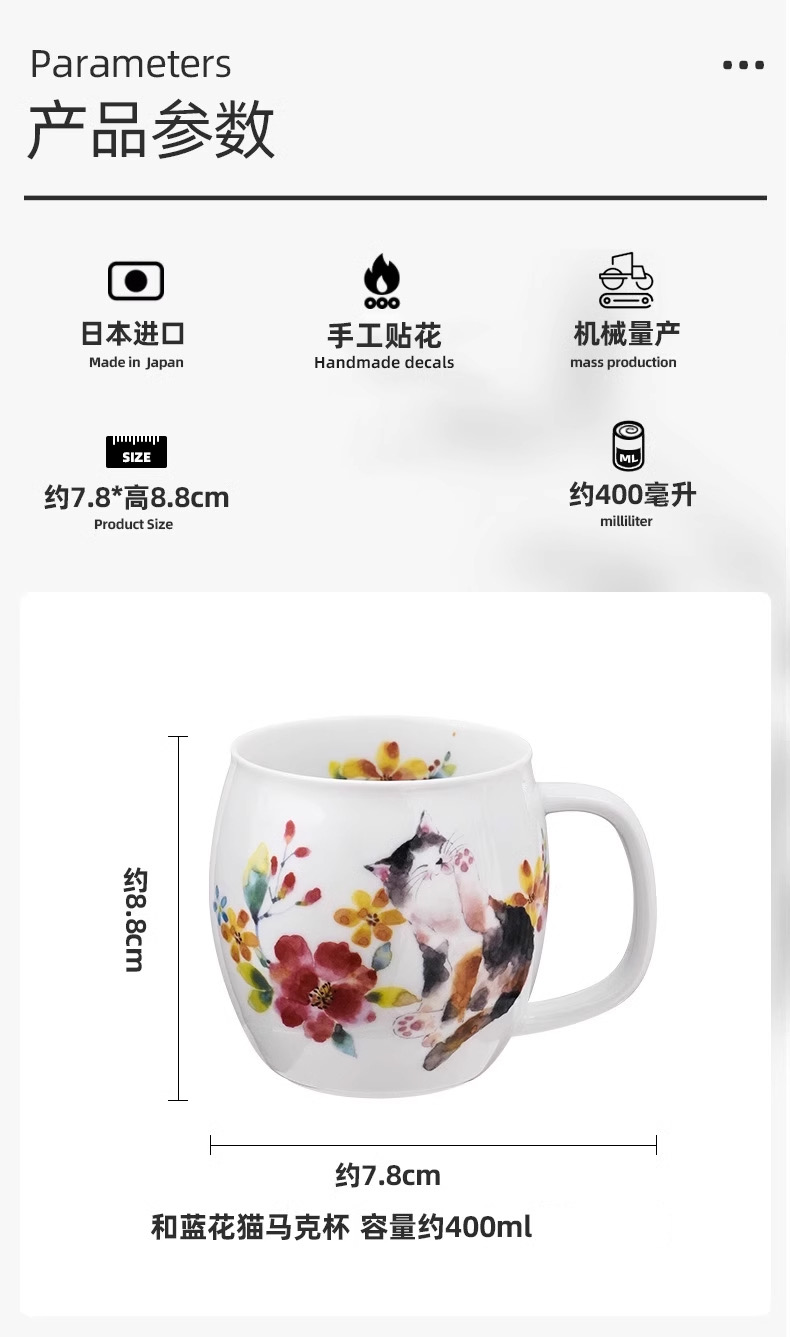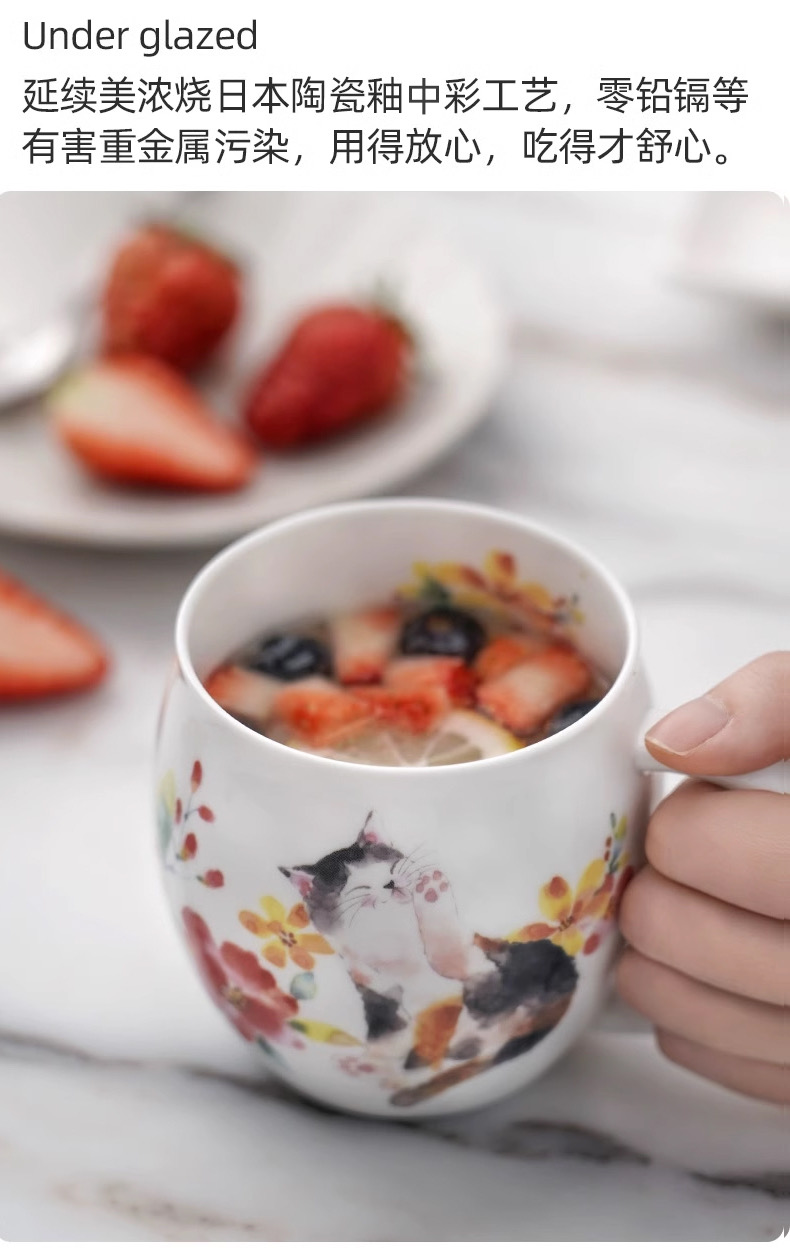 日本CERAMIC美浓烧陶瓷猫咪马克杯