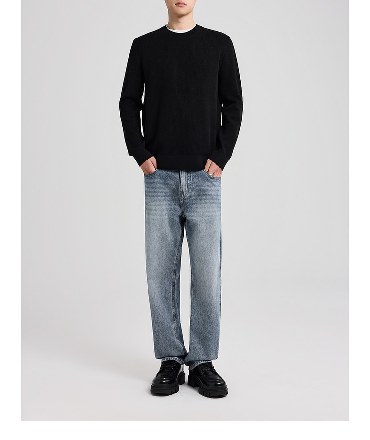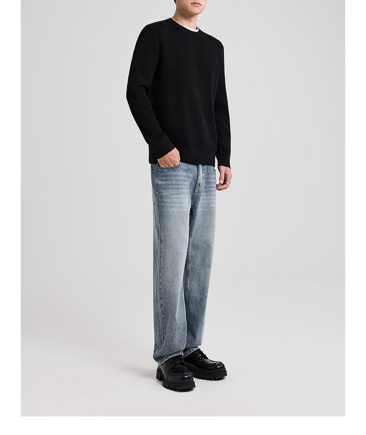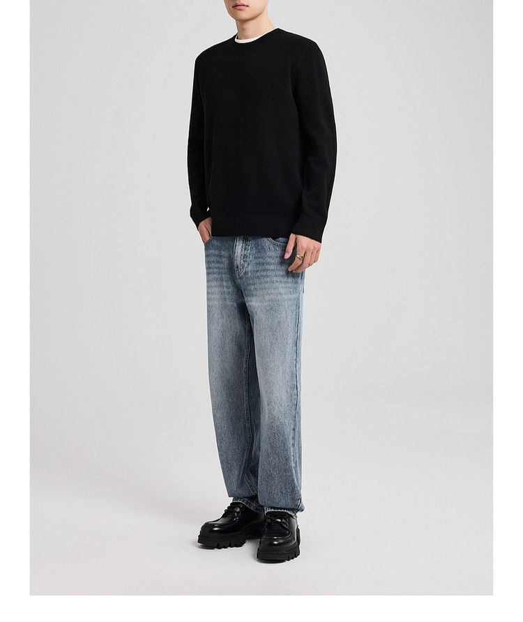 墨麦客男装2025年秋季新款基础纯色圆领针织衫毛衣男士休闲打底衫