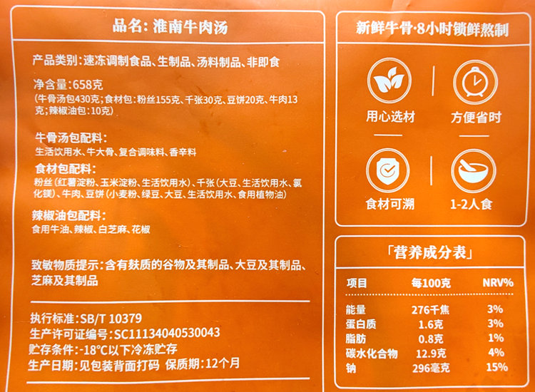 橘生南淮南牛肉汤658g/袋