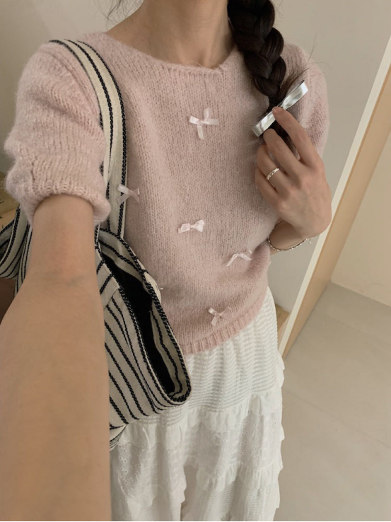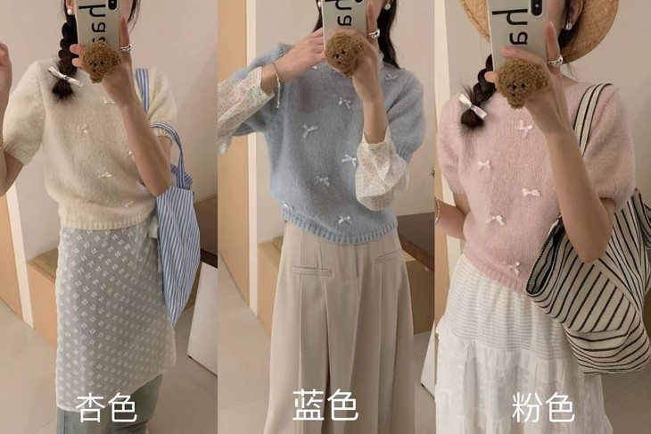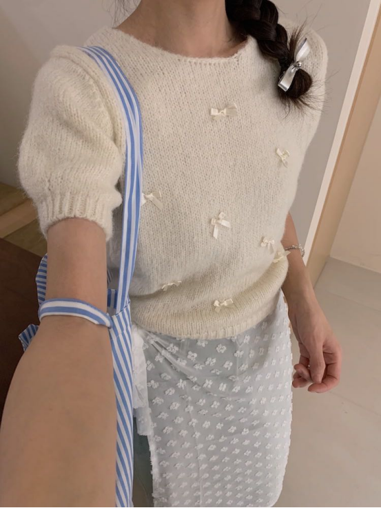 🌸【岚可可软糯小蝴蝶结短袖】它!来!!啦!!!🌈谁能拒绝软糯糯的针织短袖呢!🥰!!搭配小白裙的组合两件套,🌟上身自带温柔风滤镜