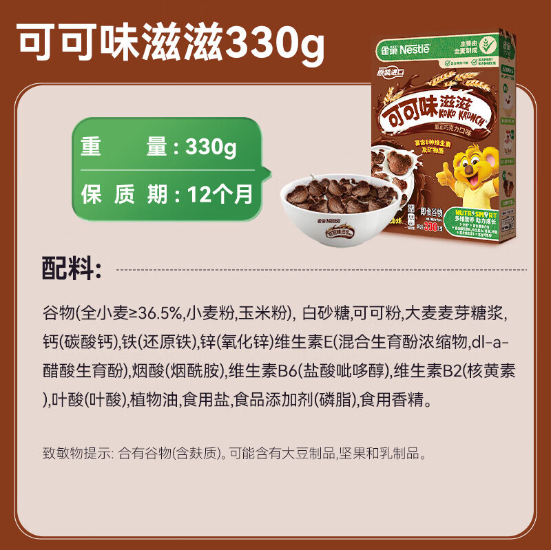 雀巢可可味滋滋谷物早餐330g