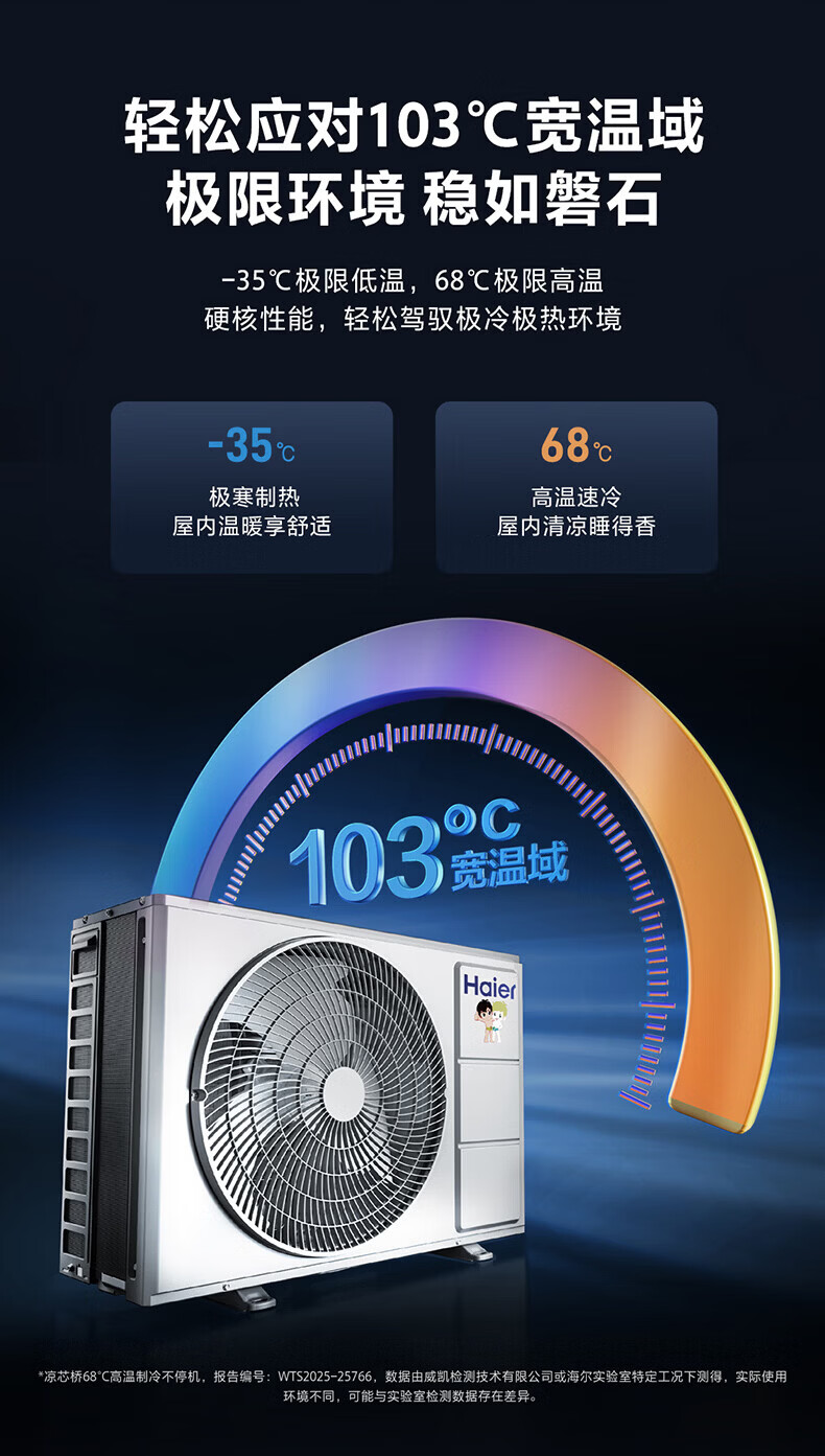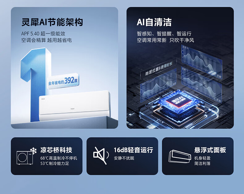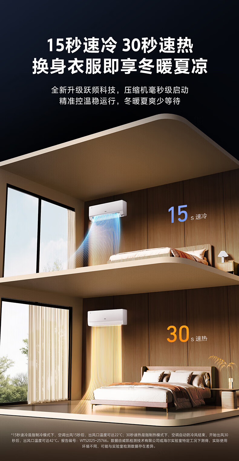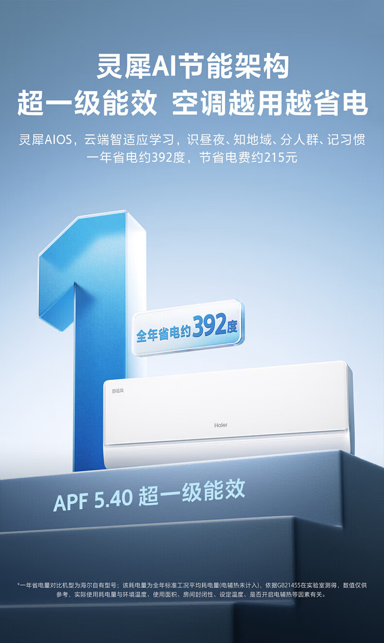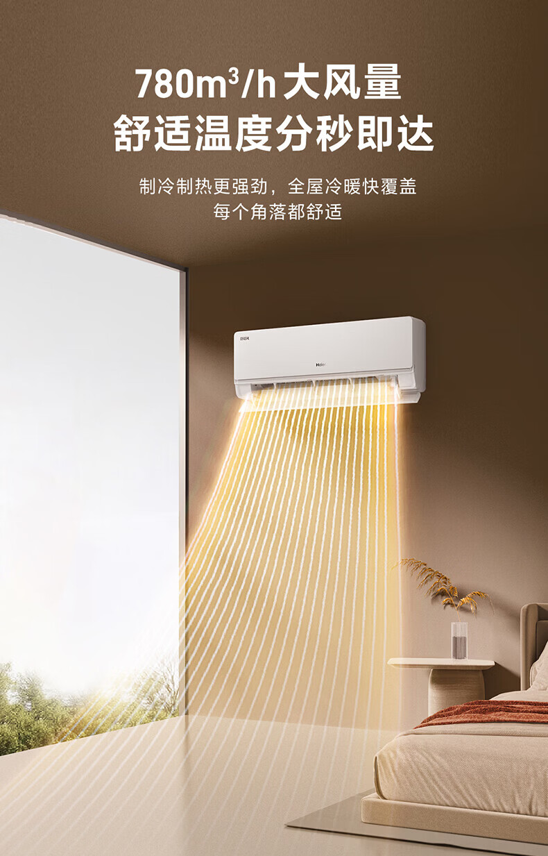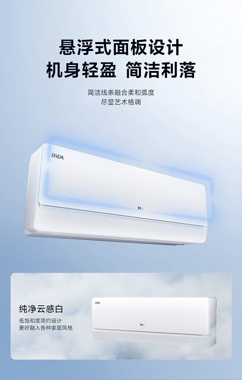 海尔舒适风空调 麦浪套系大1.5匹新一级变频冷暖挂式挂机 双排铜管蒸发器 KFR-35GW/E2-1 【舒适风】 1.5匹 WiFi人感 | 双排纯铜管蒸发器