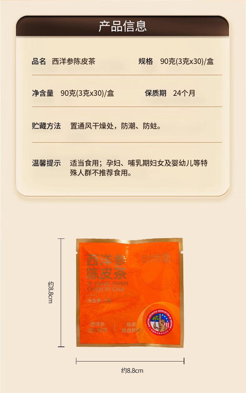 北京同仁堂西洋参陈皮茶90克(3*30袋)