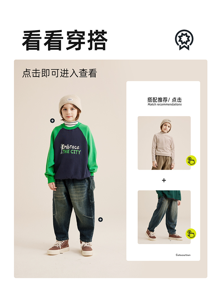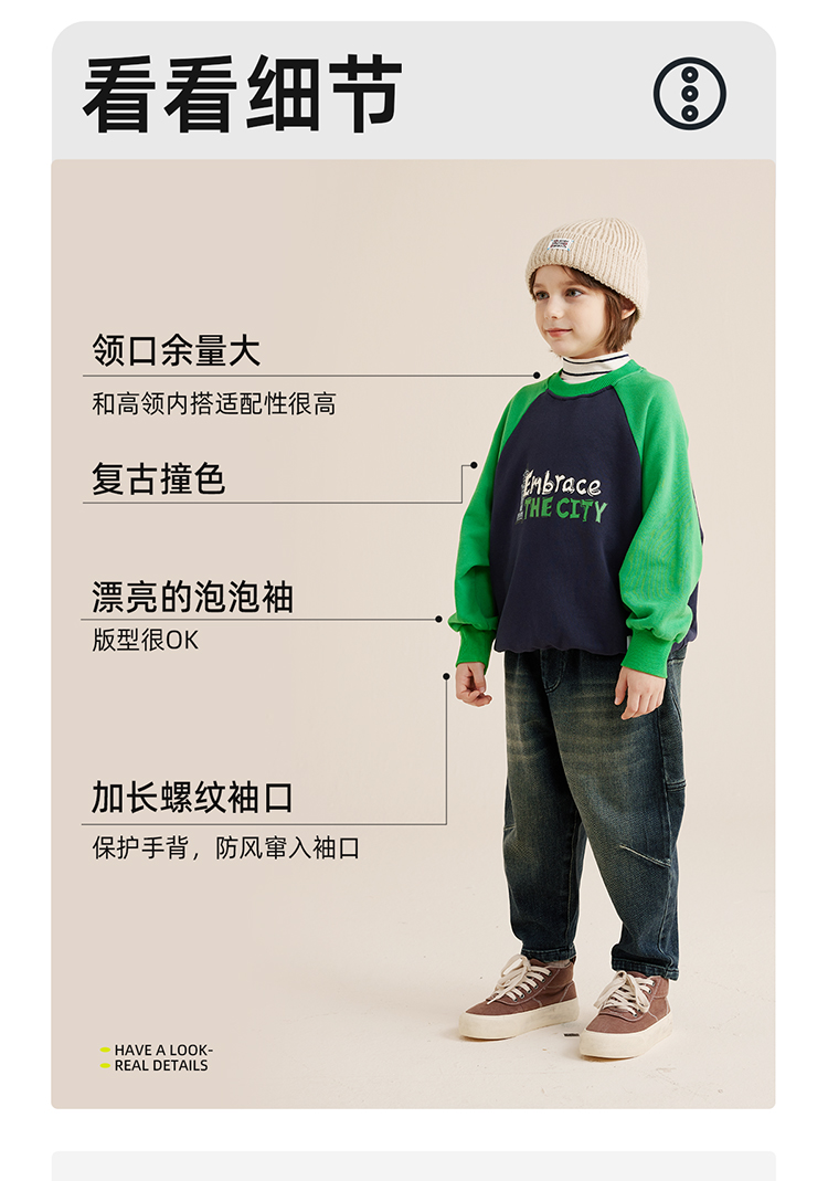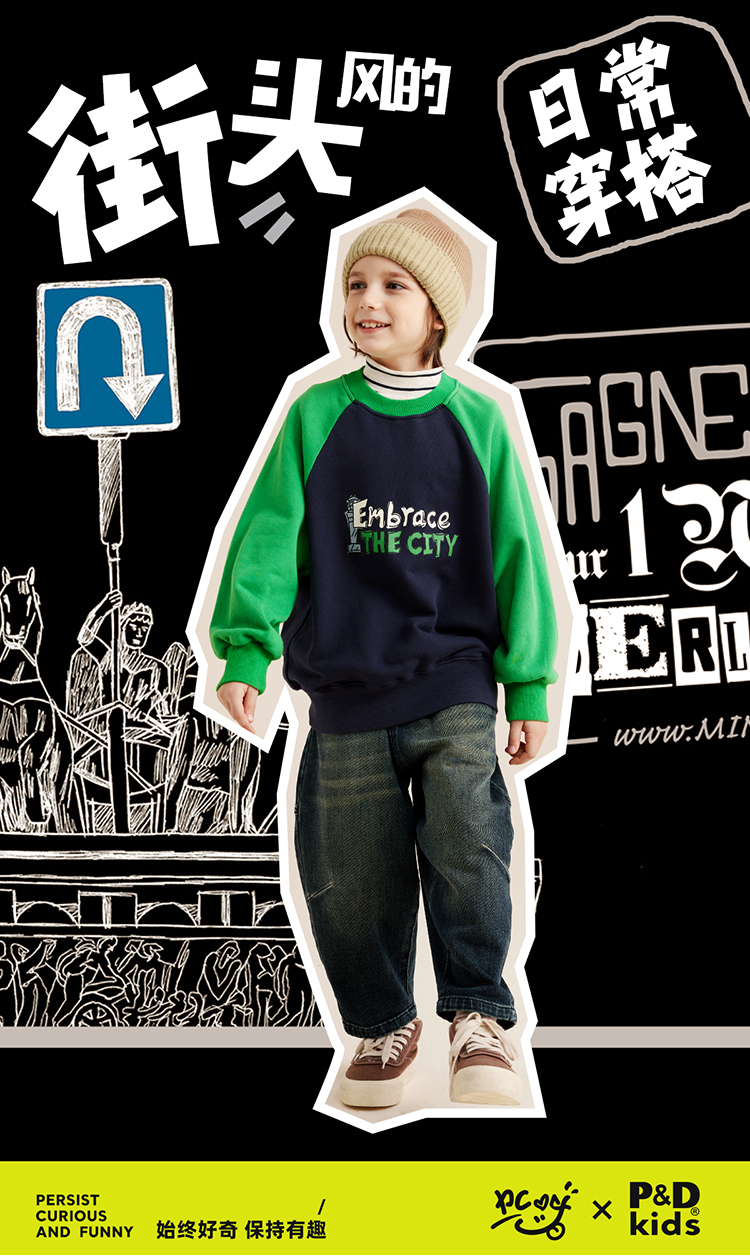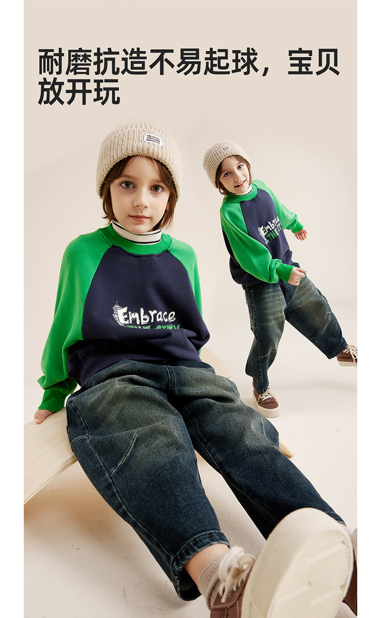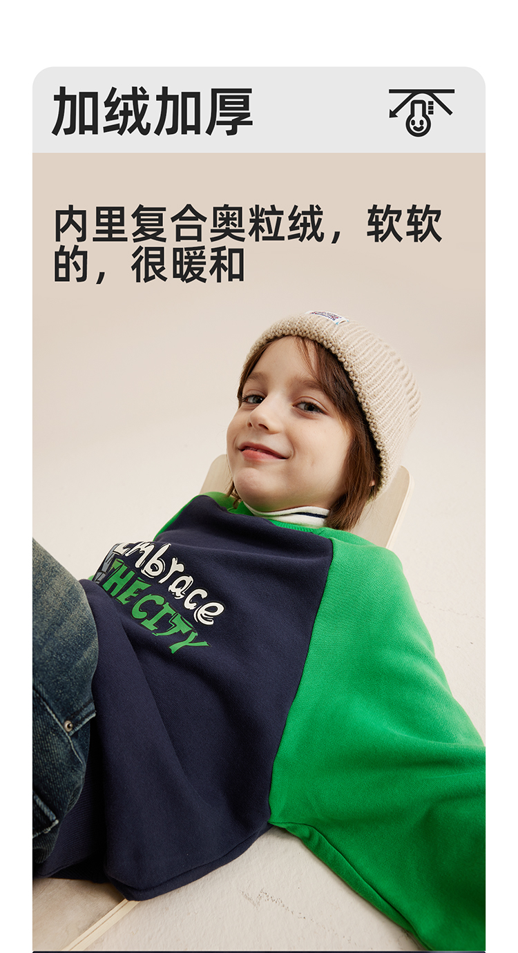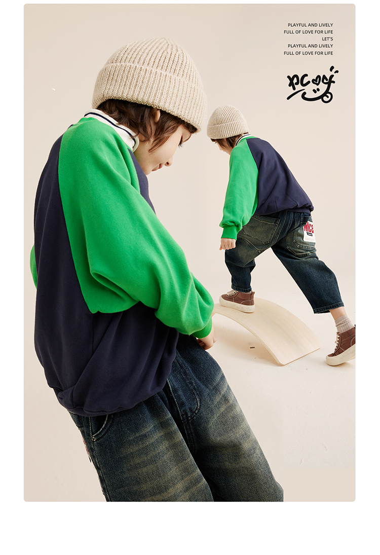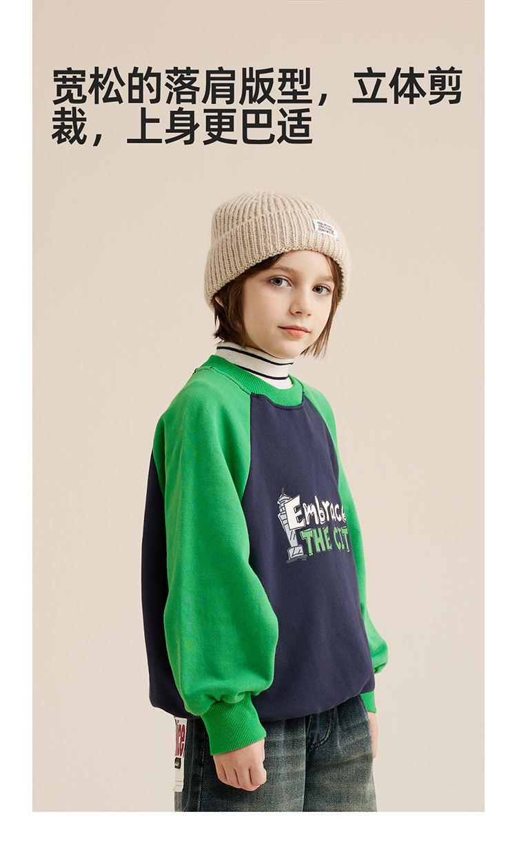 【潮酷街头风 内里复合奥粒绒】儿童插肩袖撞色卫衣PQWY2333