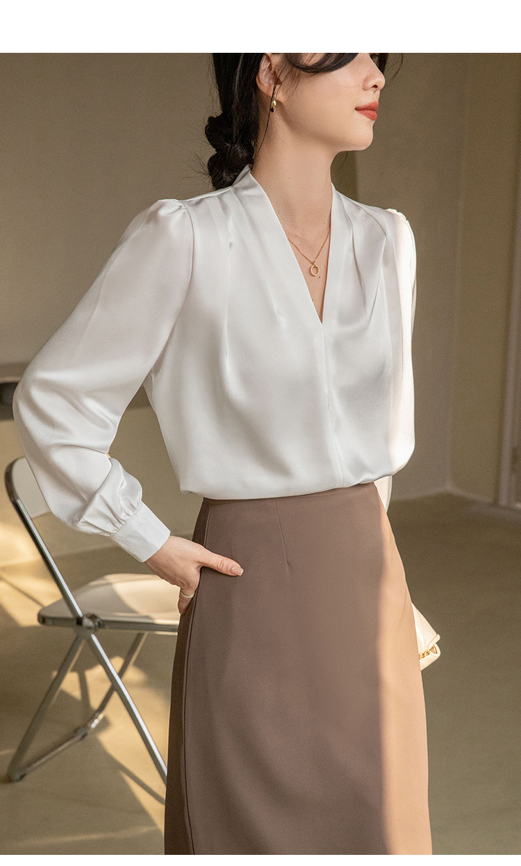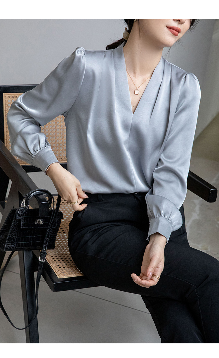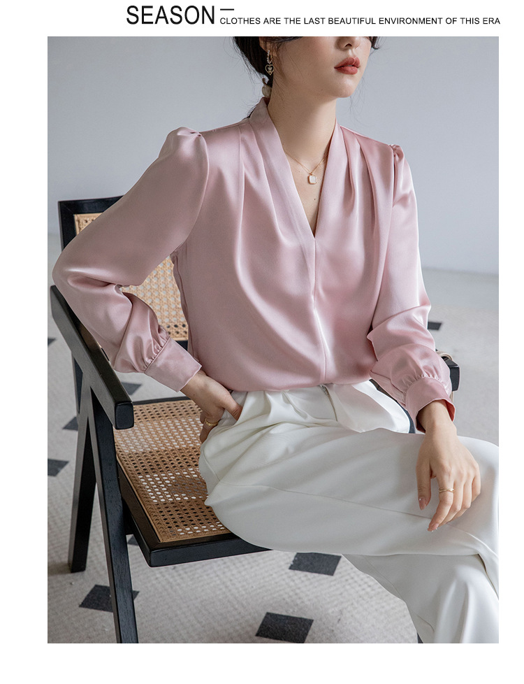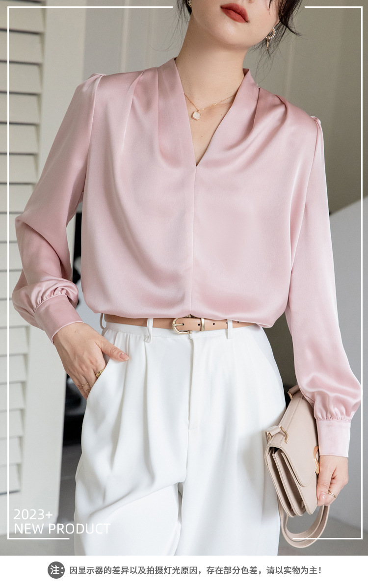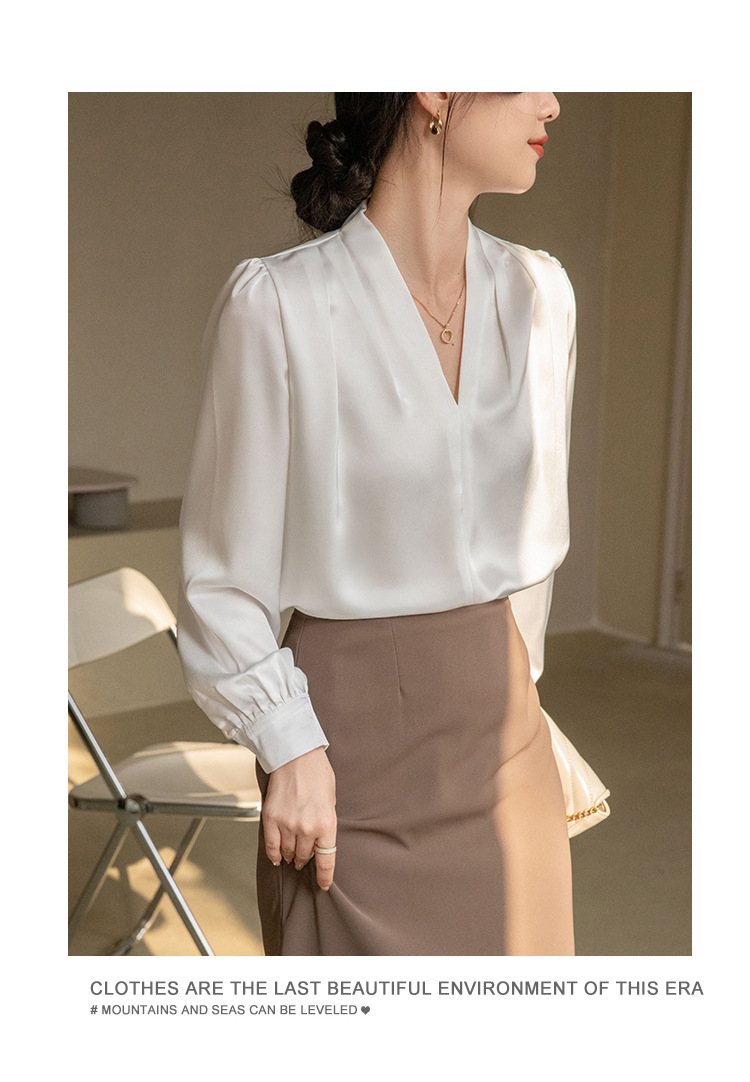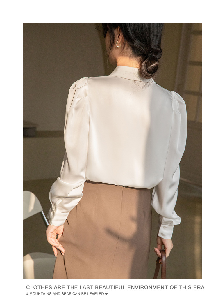 法式OL缎面衬衫 春夏叠穿设计感气质通勤衬衫