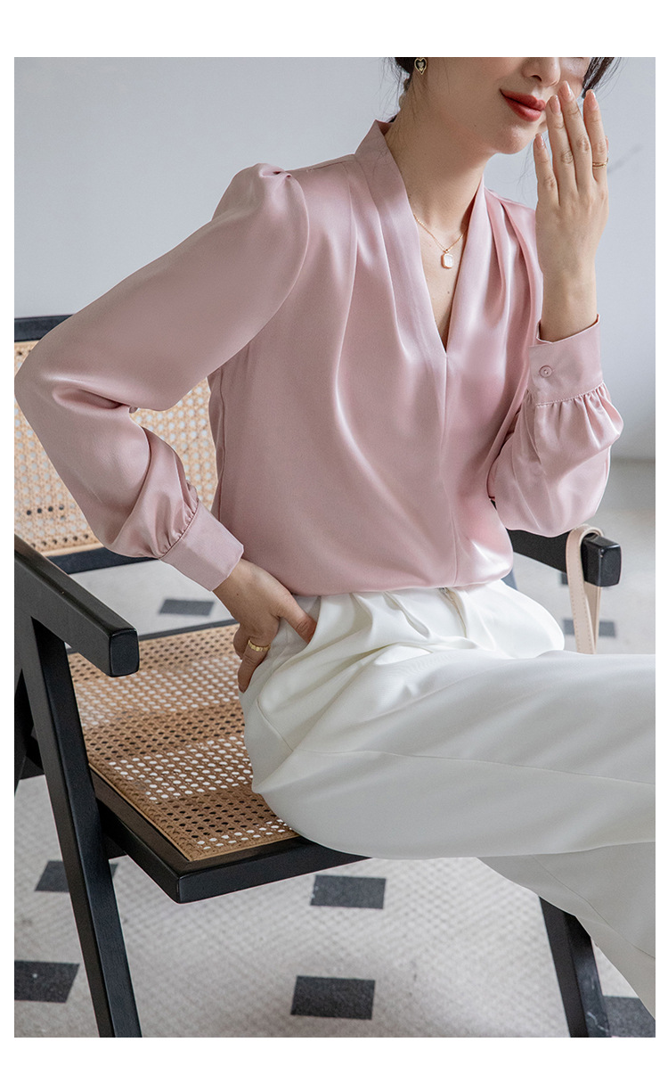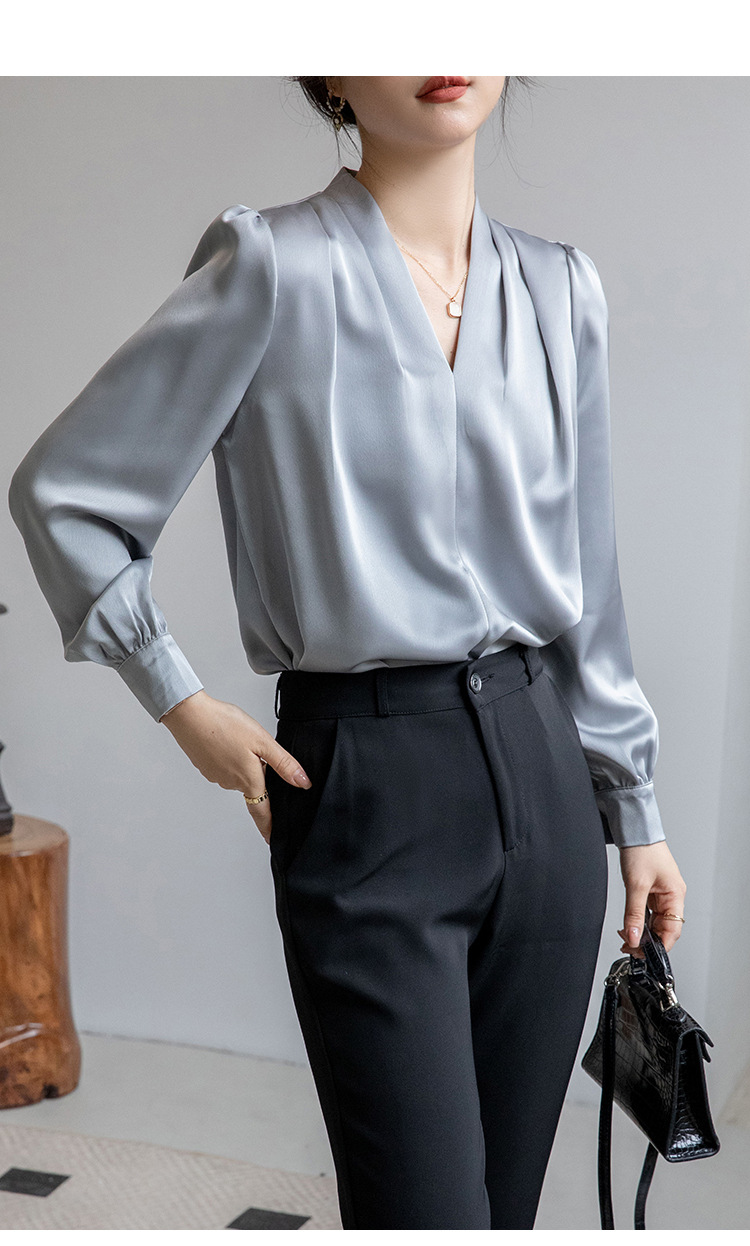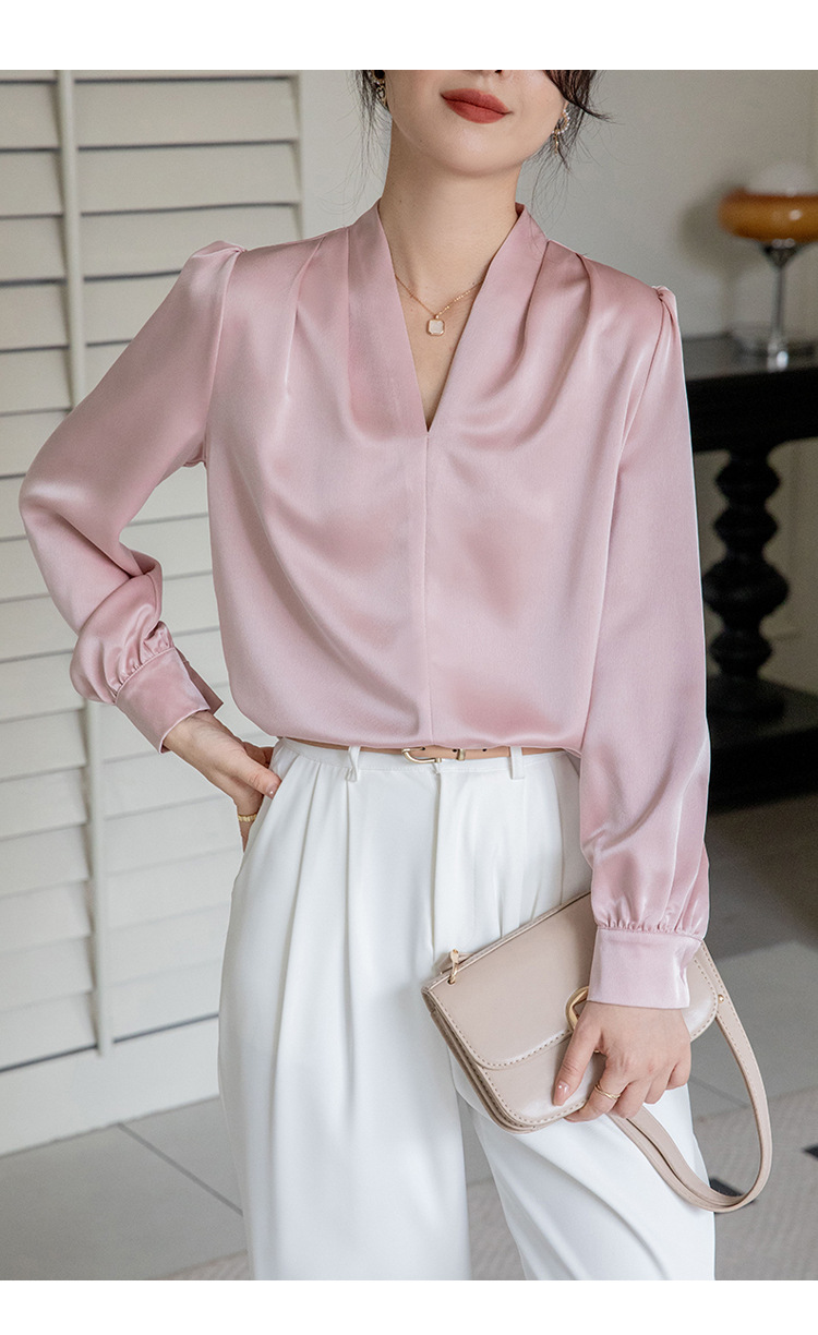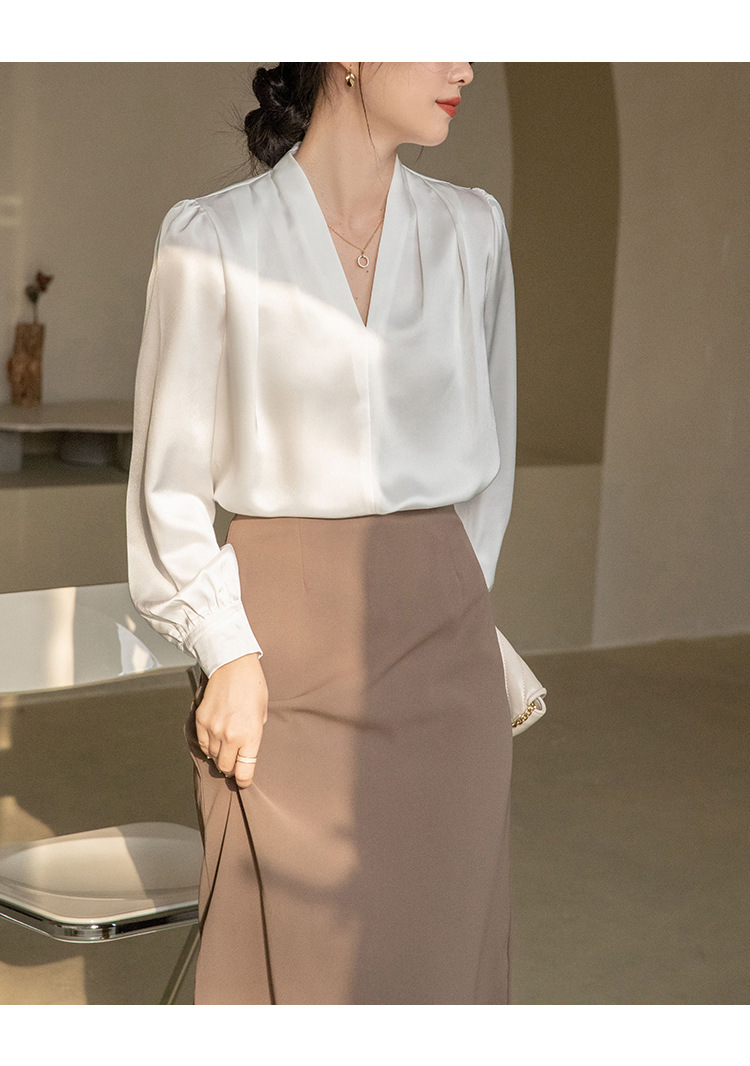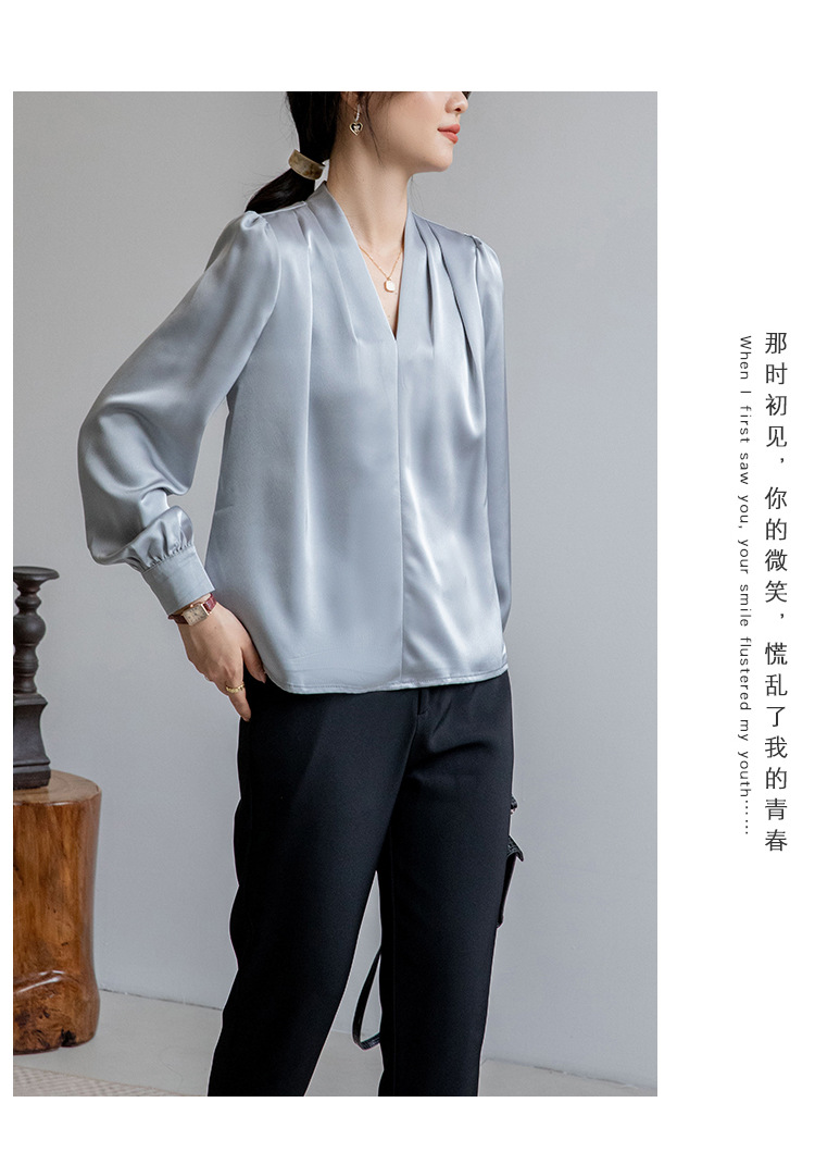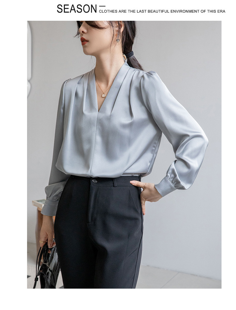 法式OL缎面衬衫 春夏叠穿设计感气质通勤衬衫