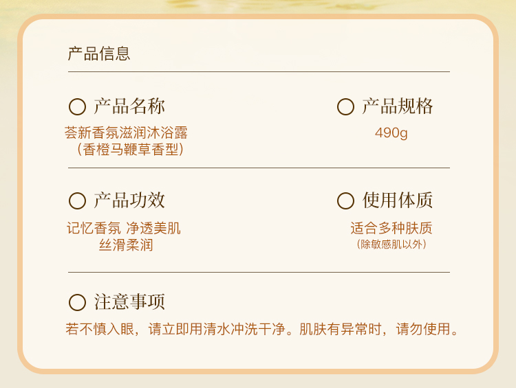 【预售 急单慎拍】完美荟新香氛滋润沐浴露(香橙马鞭草香型)490g/瓶 原价98元
