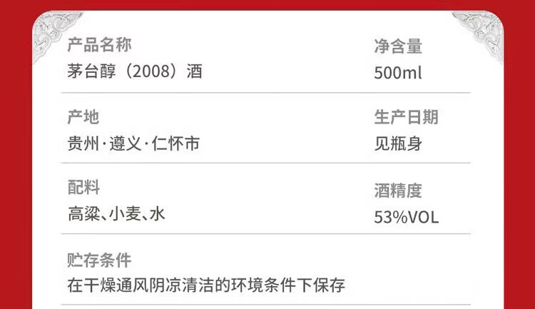 茅台醇53%vol(2008)酒500ml