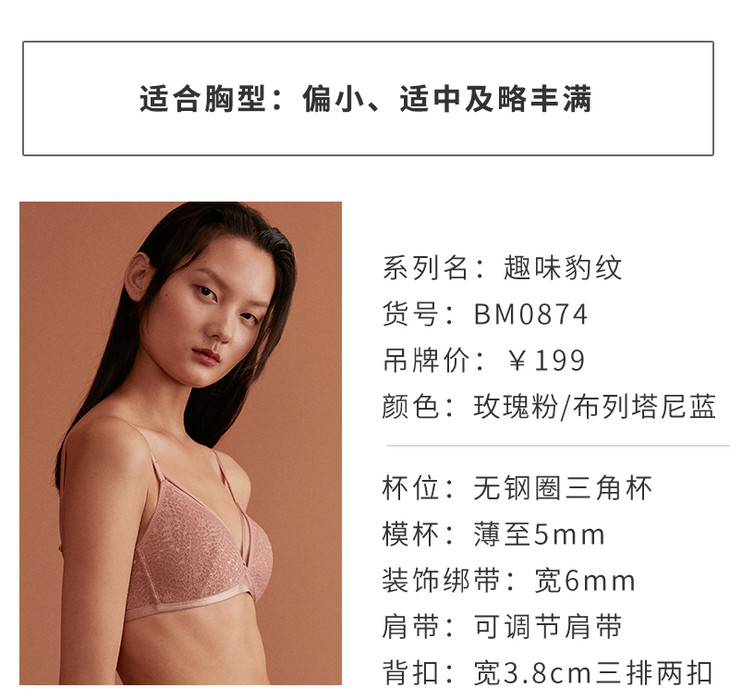 HSIA遐 薄款内衣女深V性感绑带豹纹蕾丝三角杯中小胸无钢圈文胸