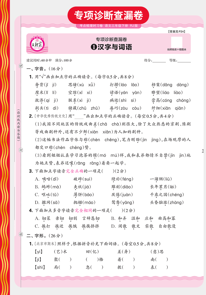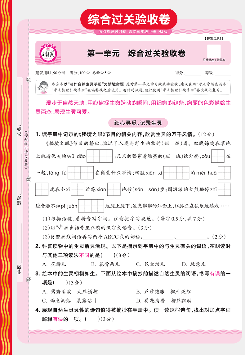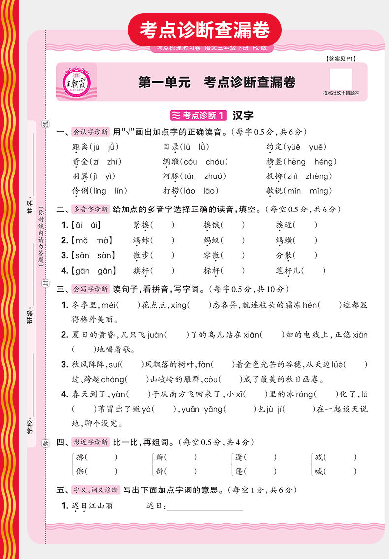 2025春考点梳理时习卷(下册)1-6年级语文/数学/英语版本任选