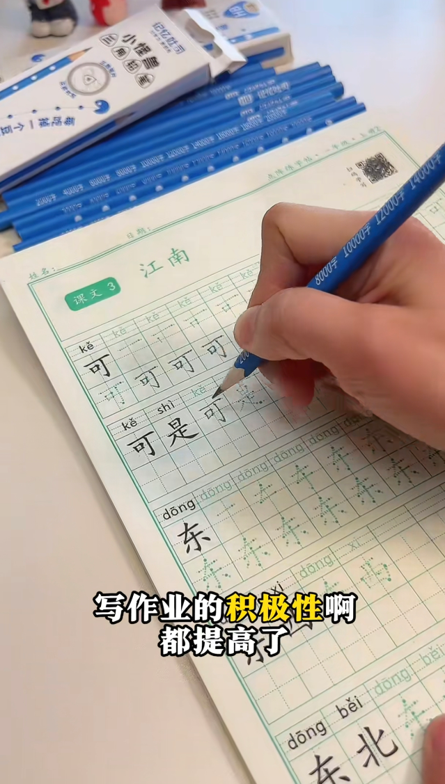 📱小怪兽吃豆豆进度条设计,写字秒变闯关游戏,激励孩子学习动力!每吃一颗豆豆,代表书写2千字 独特的三角笔杆,符合人体工学的 7mm 设计,仅仅一秒就能矫正握笔姿势,让书写变得超轻松👏👏