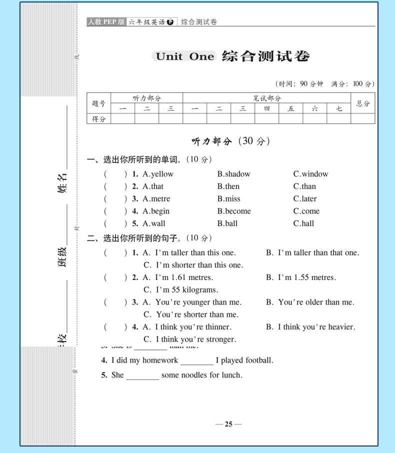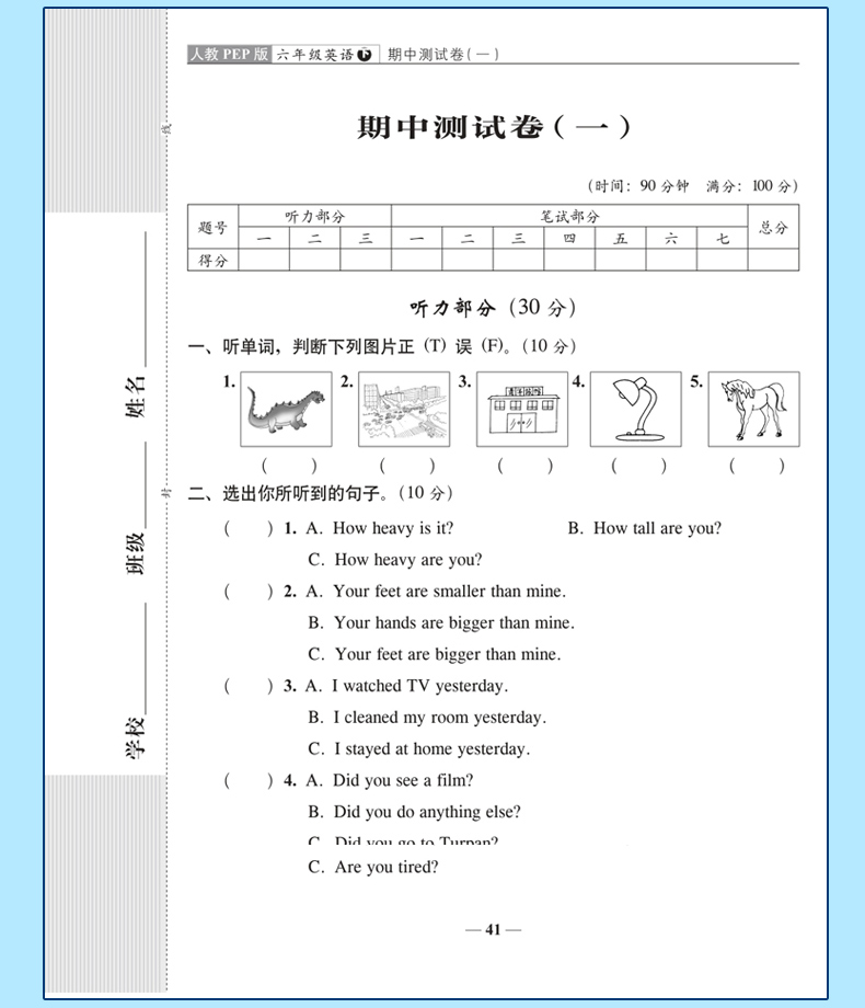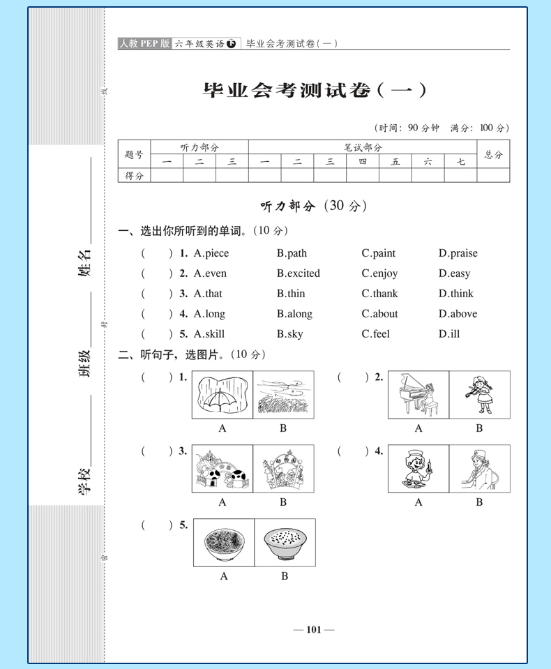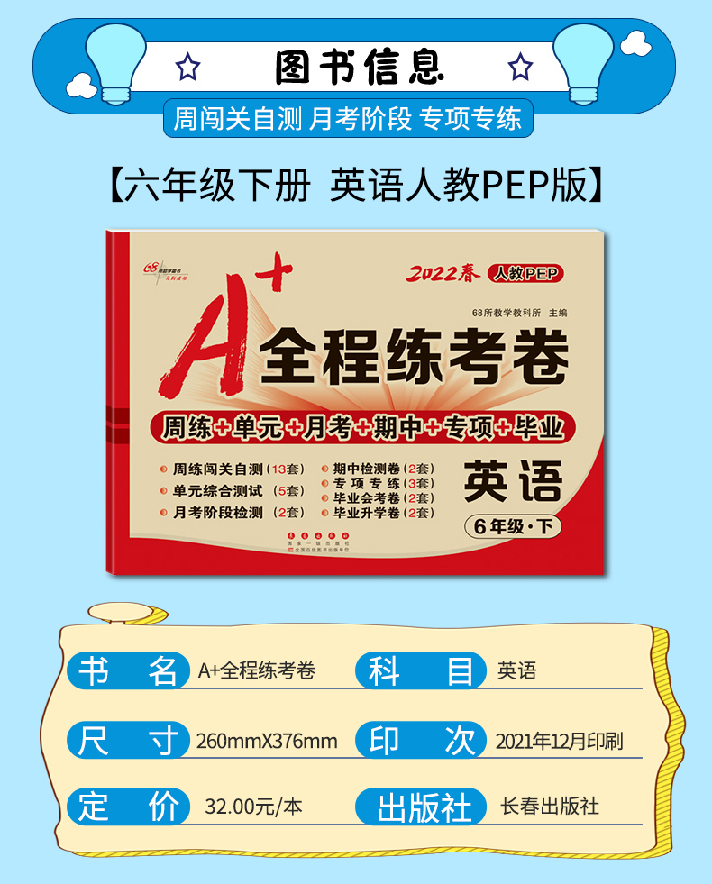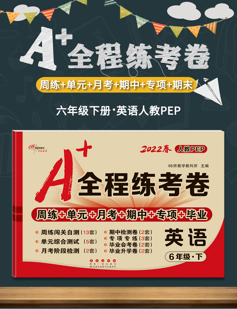 2022春A+全程练考卷六年级下册英语人教PEP版 小学6年级试卷下册英语同步训练 周练+单元+月考+期中+专项+期末试卷 68所名校图书