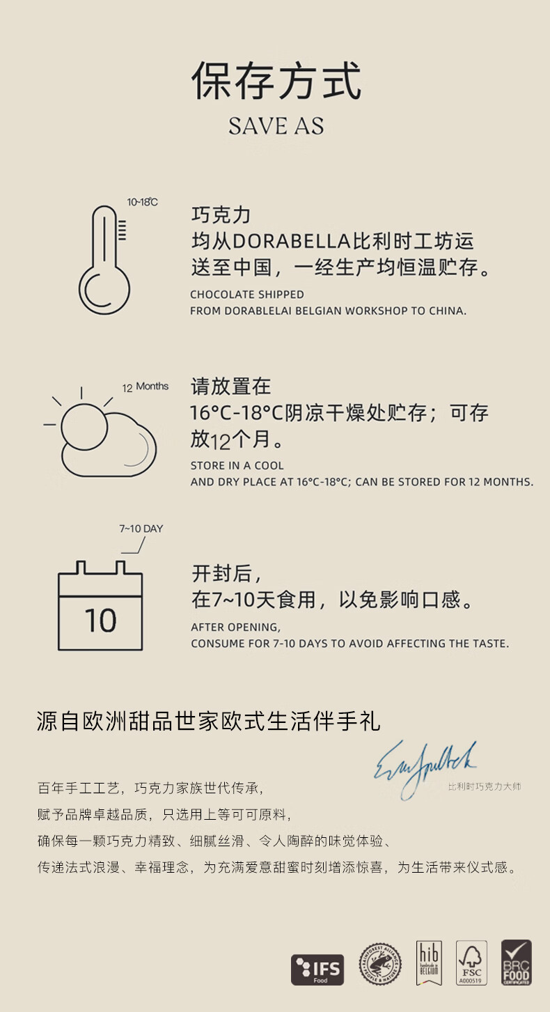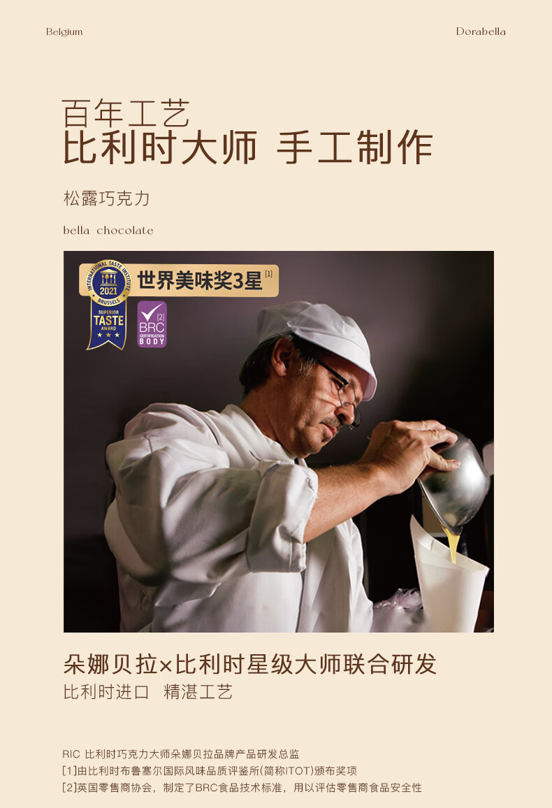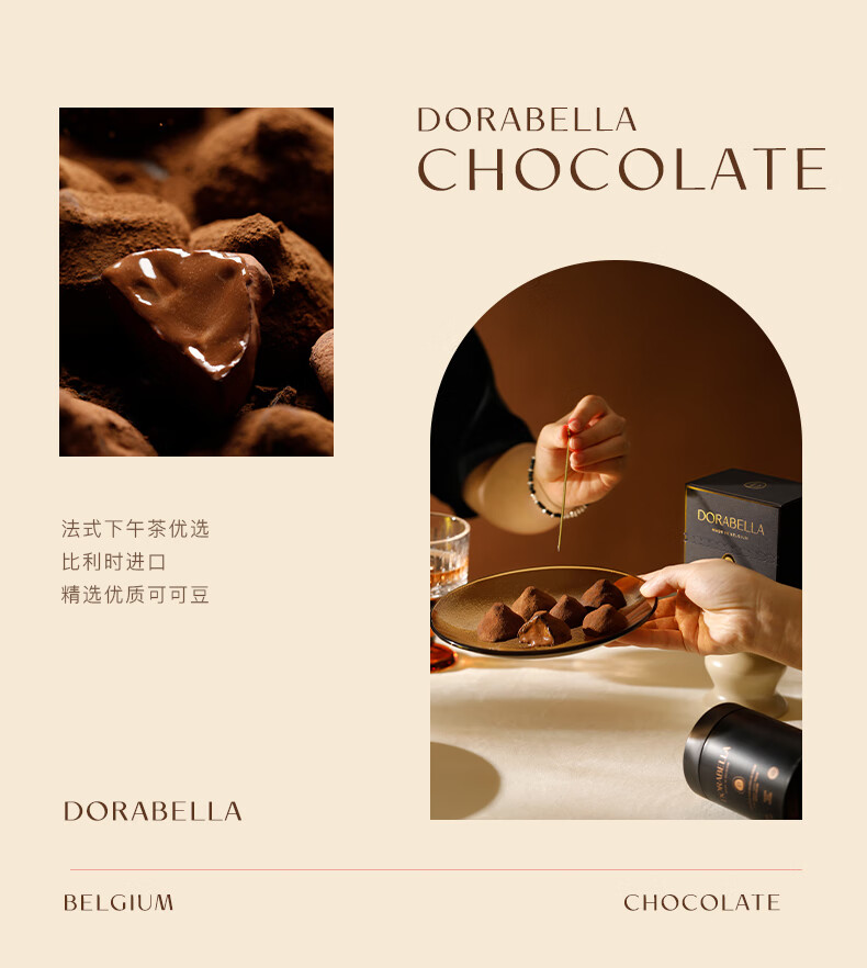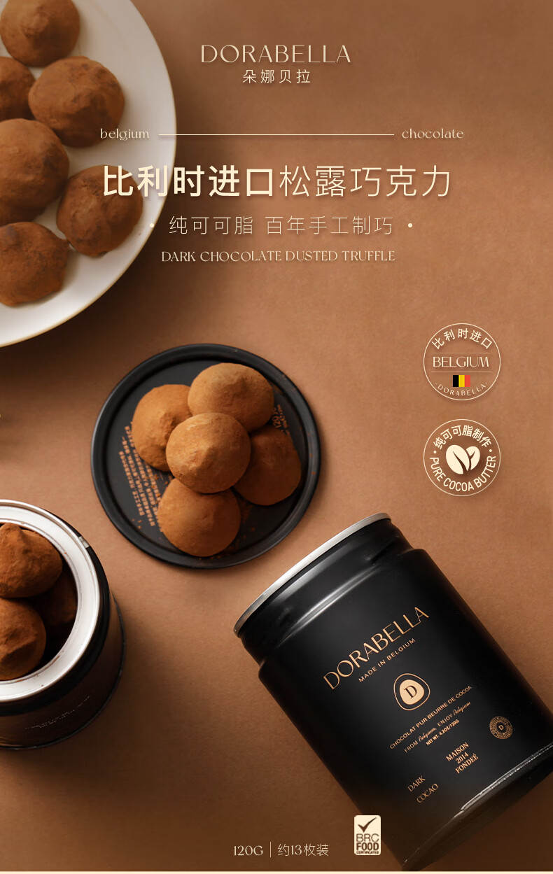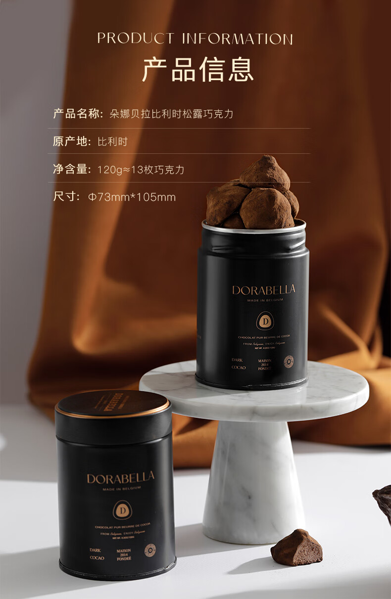 朵娜贝拉(Dorabella)比利时进口黑松露巧克力纯可可脂120g/盒