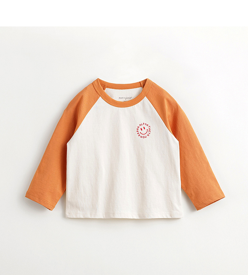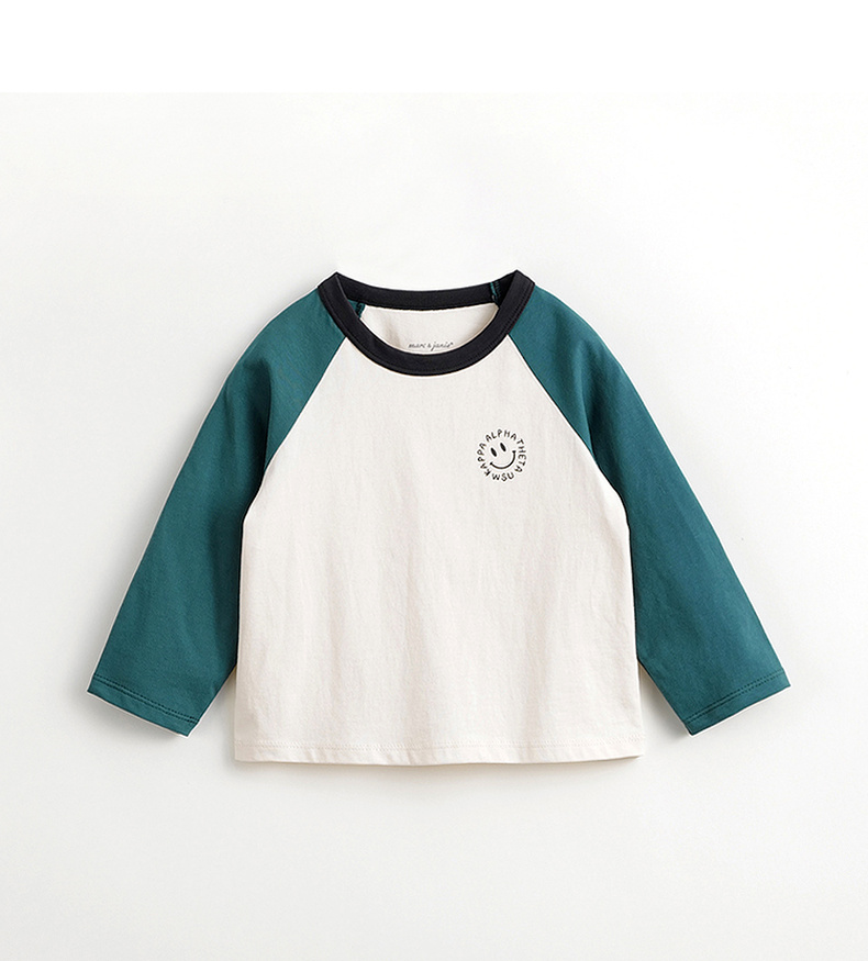 马克珍妮男女童城市户外笑脸插肩袖T恤 儿童纯棉上衣春款240155
