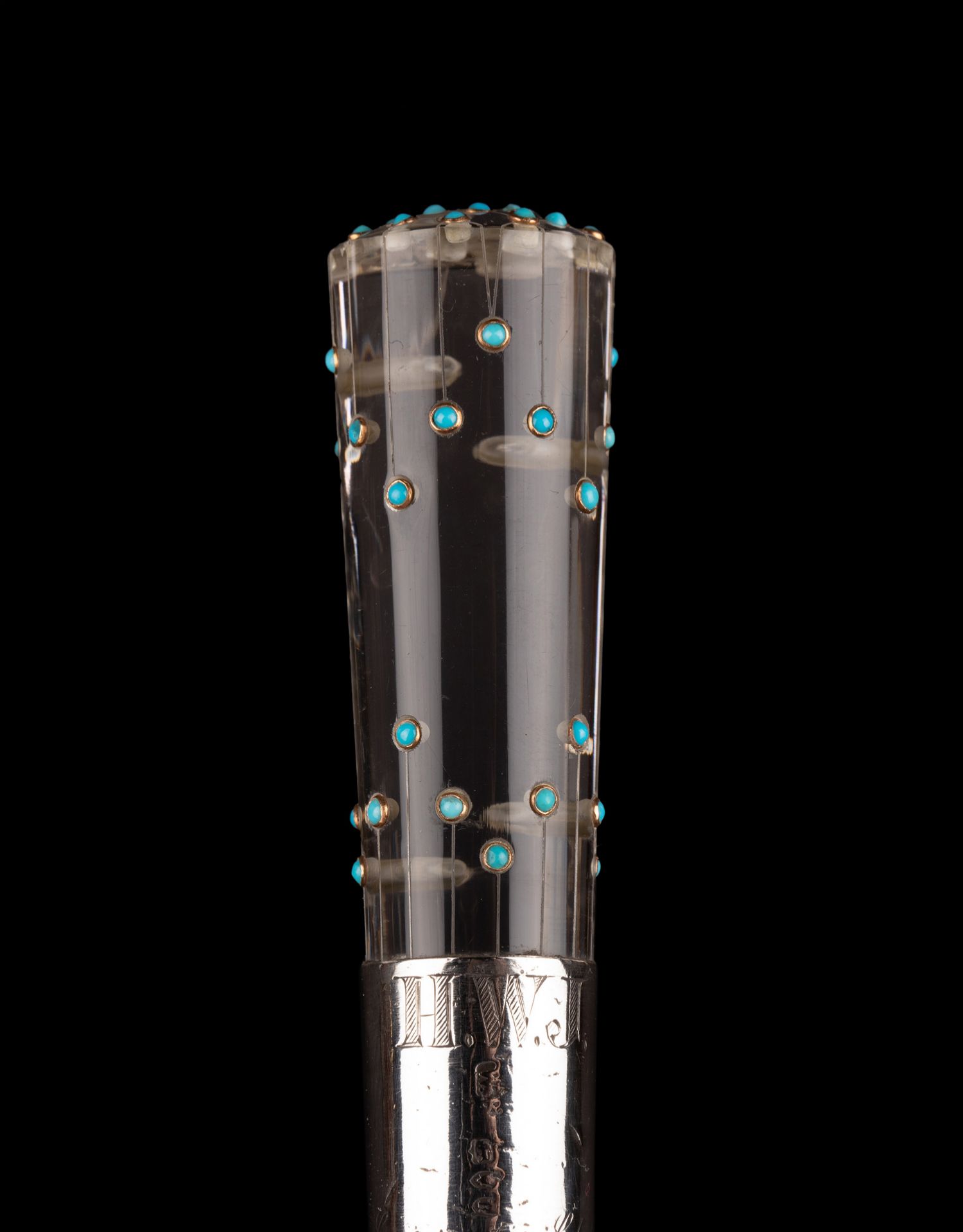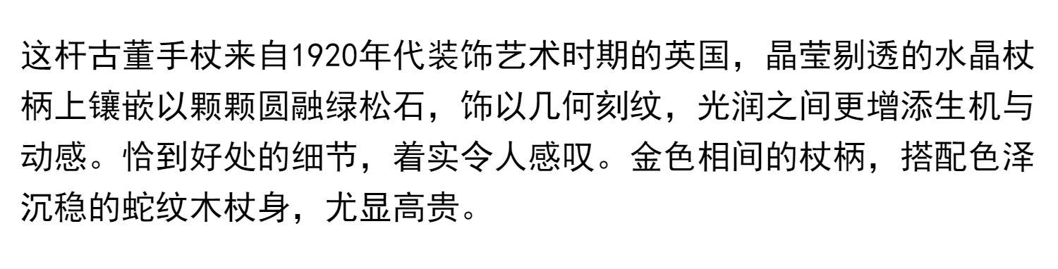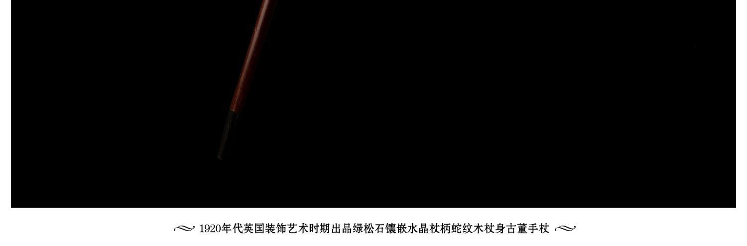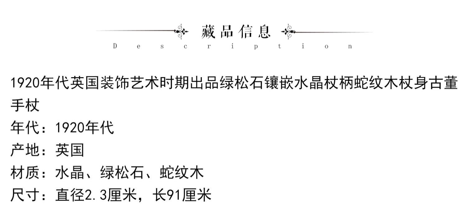 独角鹿西洋古董艺术时期绿松石镶嵌水晶杖柄蛇纹木杖身古董手杖