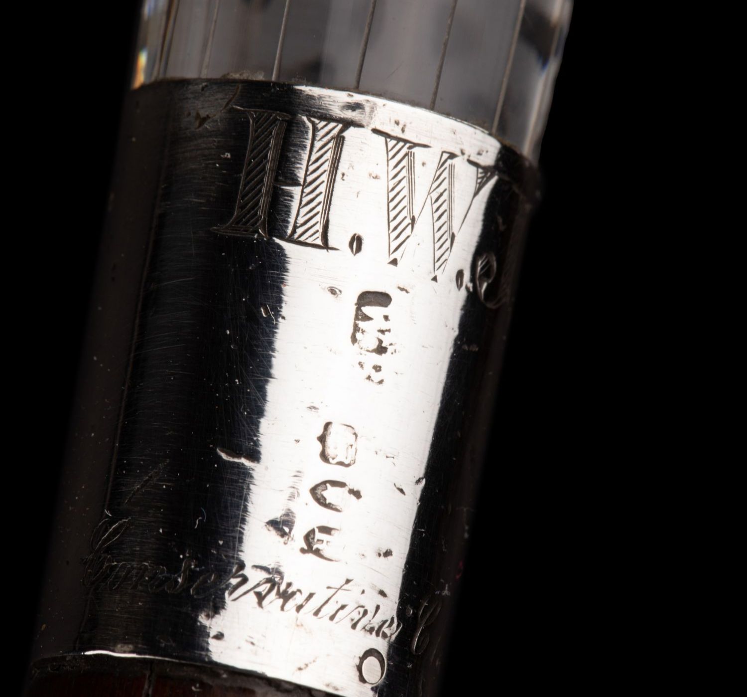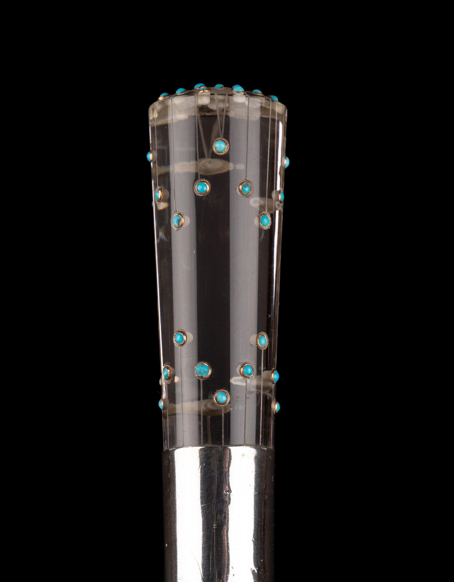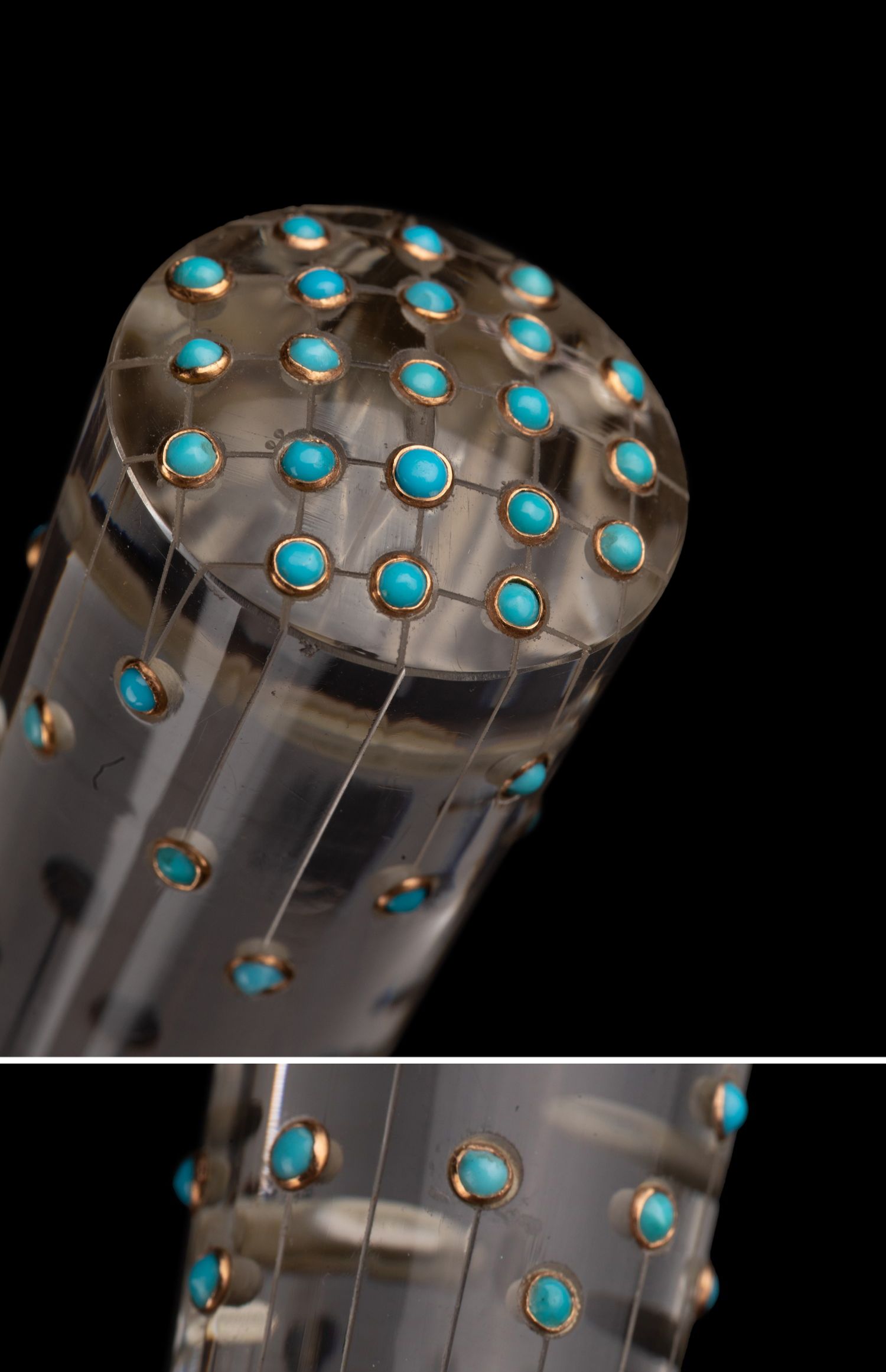 独角鹿西洋古董艺术时期绿松石镶嵌水晶杖柄蛇纹木杖身古董手杖
