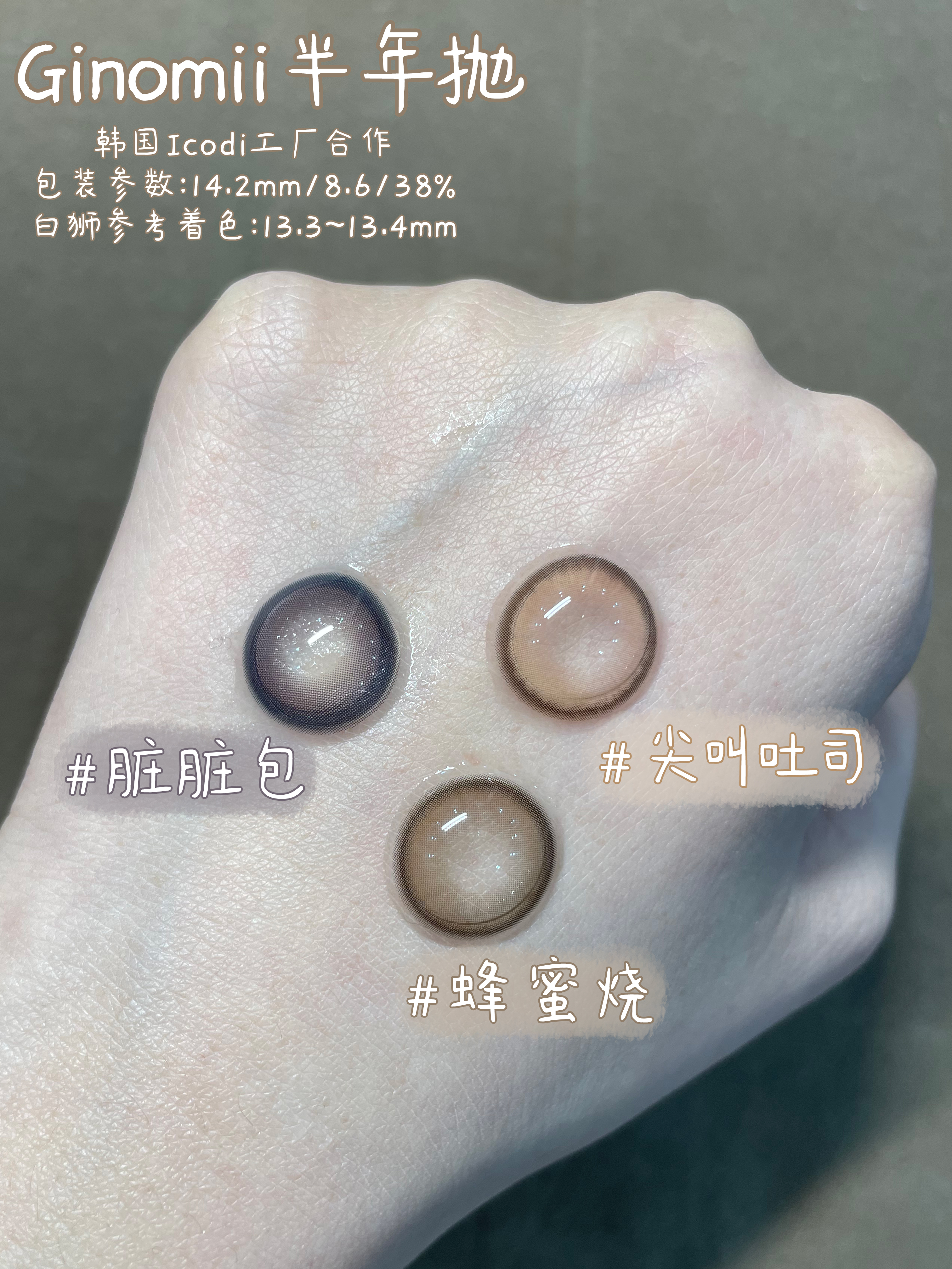 Ginomii旗下 ·脏脏包&尖叫吐司&蜂蜜烧 14.2mm白狮参考着色中等直径|半年抛 2片